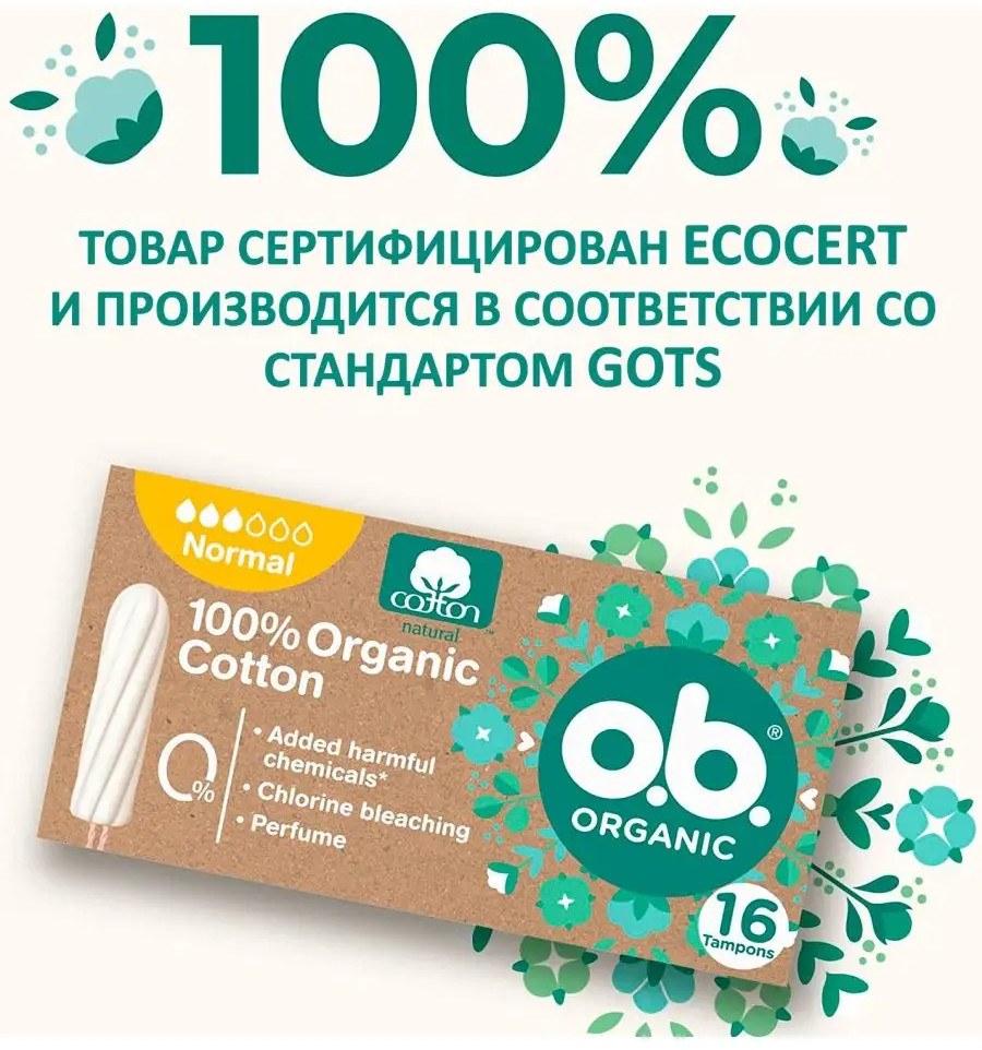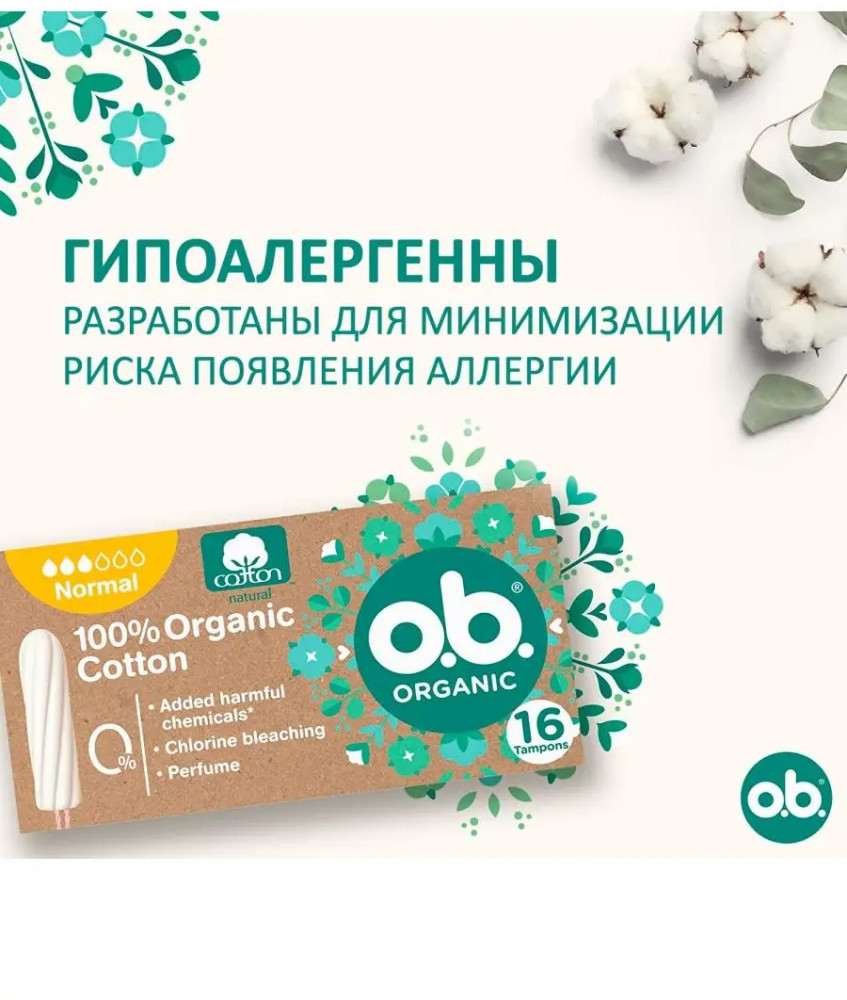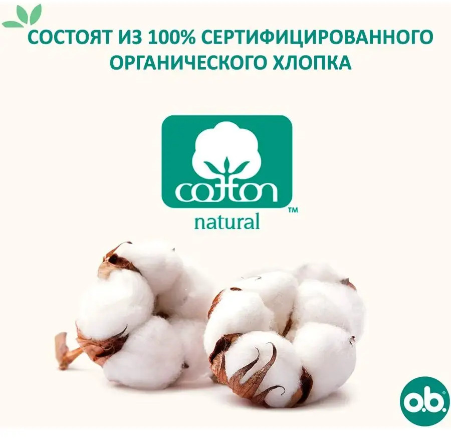 Гигиенические тампоны O.B. без аппликатора для женщин имеют уникальное шелковистое покрытие верхнего слоя ob которое состоит на 100% из растительного сырья, без вредных химических веществ, хлорного отбеливателя, ароматизаторов или отдушек произведены согласно высочайшим требованиям качества на производственных линиях одного из крупнейших брендов Johnson & Johnson на заводе в Германиии. Данные тампоны превосходят по качеству и комфорту своих конкурентов таких как : Bella Kotex tampax ola . Они также окажут прекрасную поддержку во время первых дней цикла после родов. Благодаря наличию индивидуальной упаковки их удобно носить с собой в косметичке.