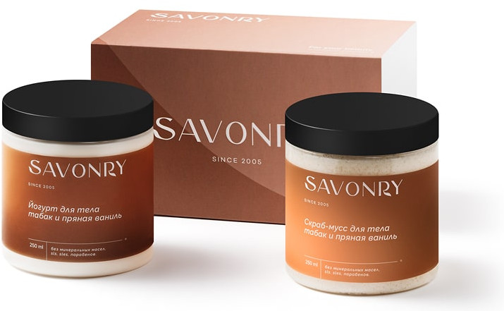 Серия: Табак и пряная ваниль Набор для тела с йогуртом и скрабом-мусс «Табак и пряная ваниль» Savonry Tobacco And Spicy Vanilla Set — это чувственный уход, сочетающий глубокое очищение и интенсивное питание. В состав входят нежный скраб-мусс и лёгкий йогурт для тела, которые превратят уход за кожей в настоящее удовольствие. |