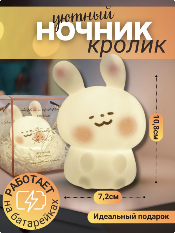 Декоративный светильник-ночник «Милый зайчик»В данный момент этот товар отсутствует в продаже. Возможно, у нас найдется аналогичный или похожий товар здесь. Декоративный светильник-ночник «Милый зайчик» в подарочной упаковке. Очаровательный ночник в форме зайчика создаст уютную атмосферу в комнате и станет отличным подарком для детей и взрослых. Мягкий, теплый свет помогает расслабиться и комфортно засыпать. |