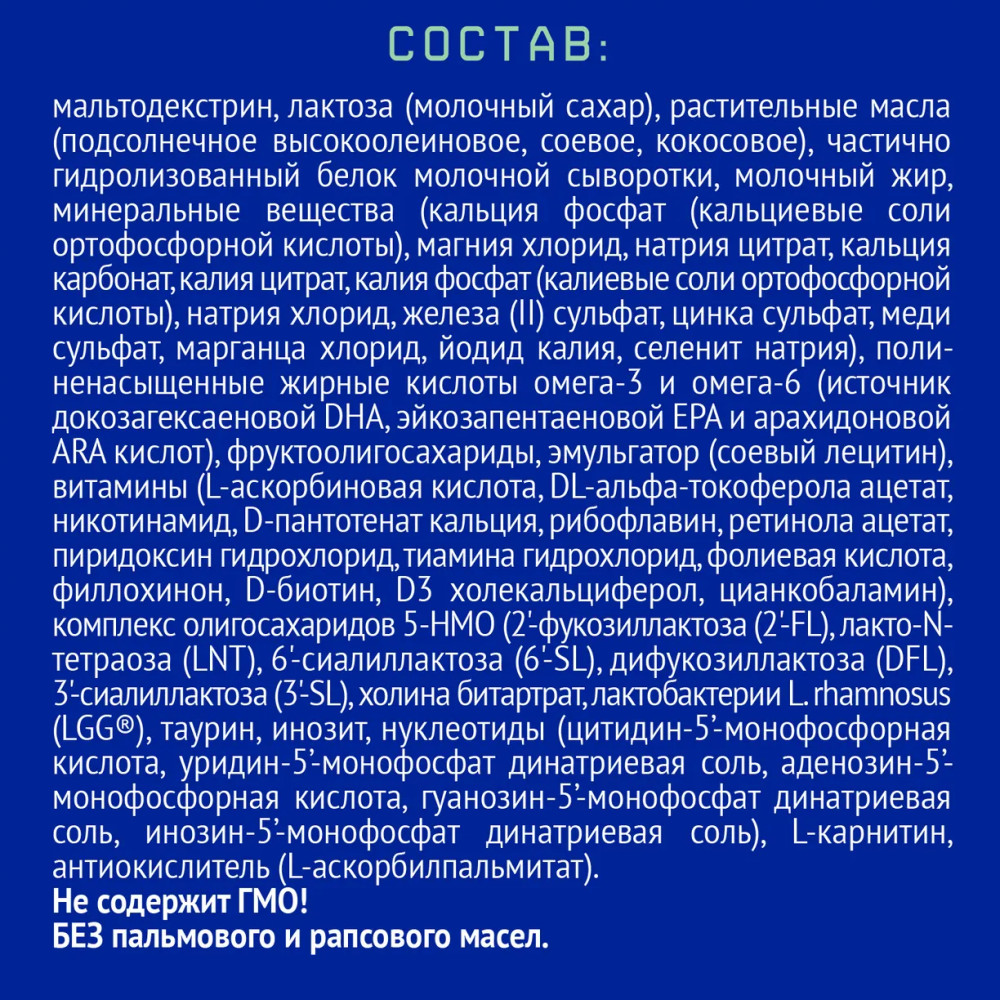 • 5-HMO COMPLEX — комплекс из пяти основных пребиотиков-олигосахаридов грудного молока — способствует поддержке иммунной системы и защищает от инфекций.
