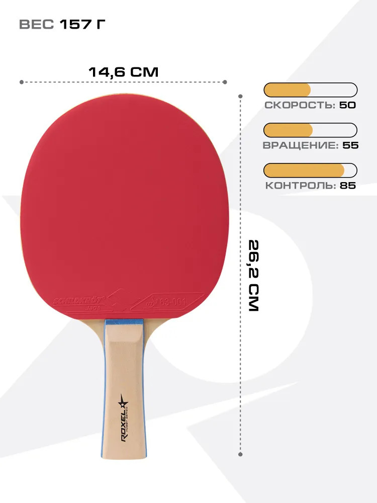 💳 Оплатить за товар можно при получении 🇰🇿 Есть бесплатная доставка по Казахстану 🎁 Копите бонусы с каждой покупки Набор для настольного тенниса Hobby Progress бренда Roxel состоит из одной ракетки Hobby Progress, трех мячей 1* Tactic и классического черного чехла. Ракетка для пинг-понга Progress любительского уровня — хороший выбор для начинающего игрока. Высокий показатель контроля помогает пользователю быстро прогрессировать. Мячи 1*Tactic гарантируют постоянство отскока, а хорошо сбалансированная форма помогает начинающему спортсмену быстро обучиться уверенному владению мячом для пинг-понга. Чехол для настольного тенниса выполнен из качественного и долговечного нейлона. |