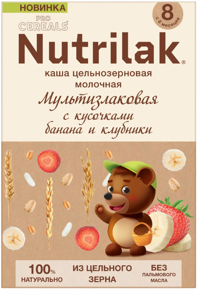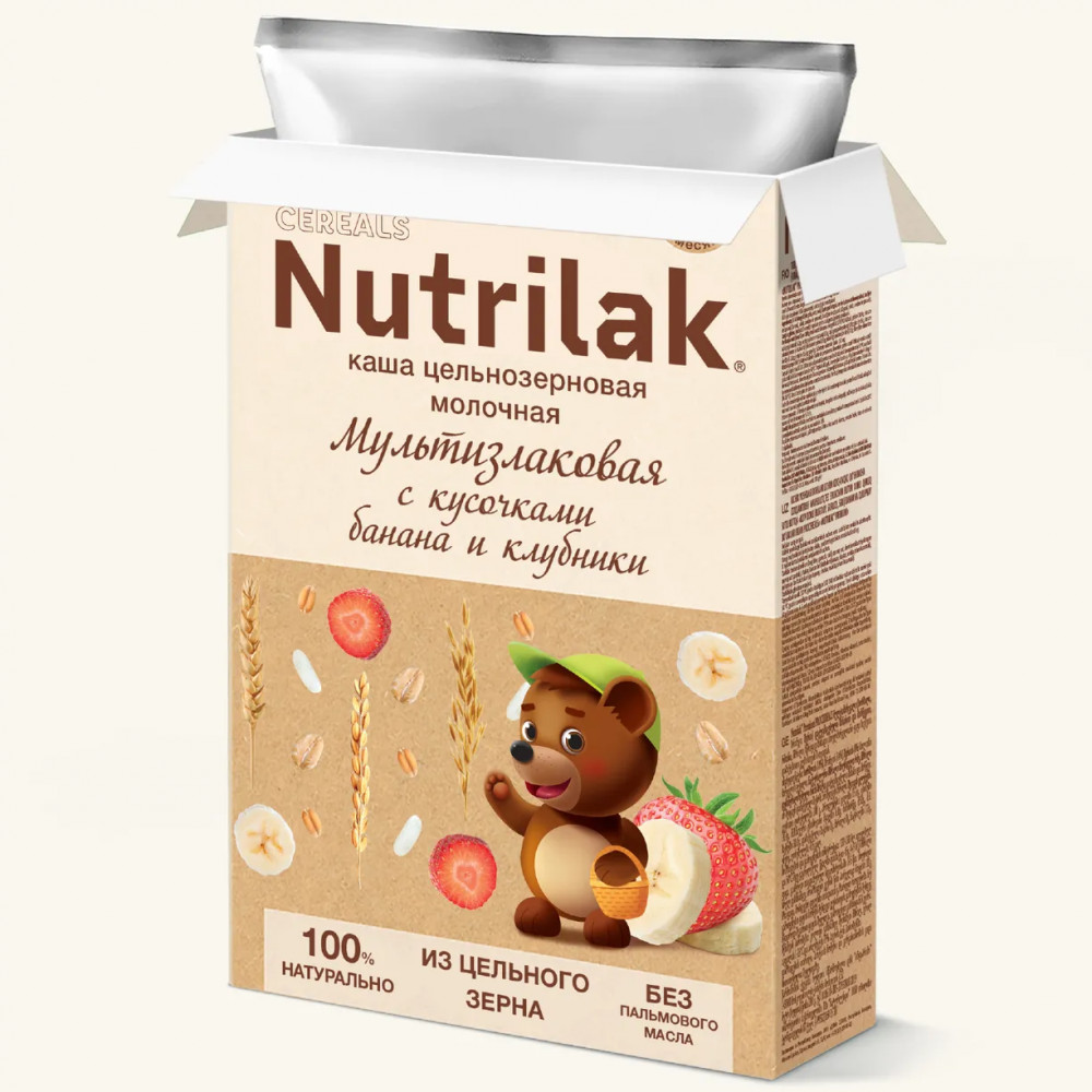 | Nutrilak Каша цельнозерновая молочная «Мультизлаковая с кусочками банана и клубники»+50 (бонусов)
