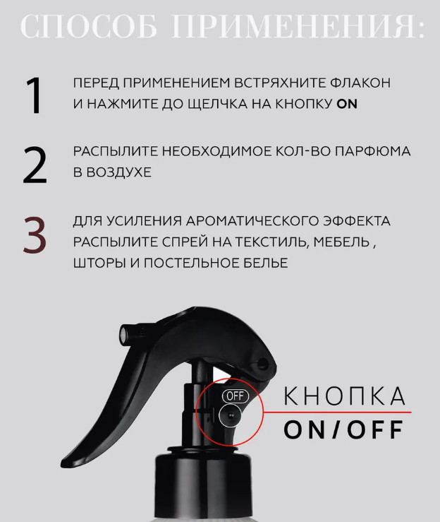 Решила попробовать что-то новенькое для дома и взяла этот распылитель. Аромат классный, свежий, чистый, будто только что постирали бельё. Не химозный. Расход экономичный, буквально пару пшиков хватает. Если любите лёгкие, ""чистые"" запахи, обязательно попробуйте. Думаю, возьму ещё в запас или в подарок кому-нибудь.