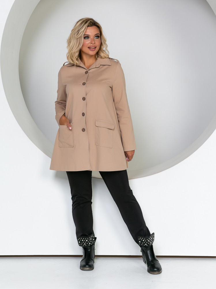 Стильный кардиган А-образного силуэта, длиной до линии колен, на подкладке. Модель выполнена из качественного коттона. Перед с центральной застежкой на петли и пуговицы, ниже уровня талии два удобных накладных кармана. Горловина дополнена отложным воротником на стойке. На спинке отделочная контрастная тесьма. Рукава втачные длинные. Кардиган станет отличным дополнением вашего гардероба в прохладное время года.