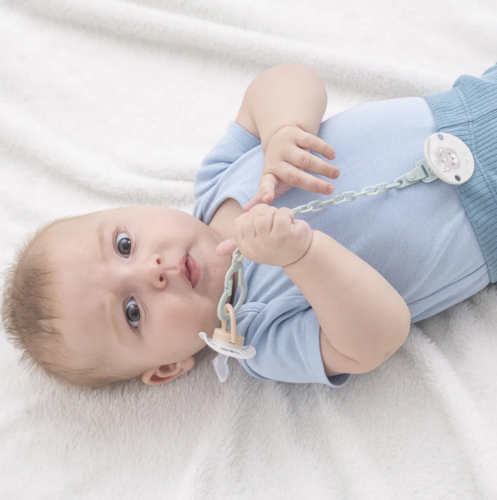Безвредный материал держателя без острых краев гарантирует безопасность для зубов малыша. Устойчив к укусам зубами ребенка. Подходит для детей с 0 месяцев. Соответствует всем требованиям безопасности детской продукции и имеет сертификат соответствия, как и все наши товары для детей. Легко моется и не впитывает запахи. Изготовлен из прочных безопасных материалов, не содержит бисфенол А (BPA free). Длина цепочки держателя для соски — 20 см, держатель — 6×5 см.