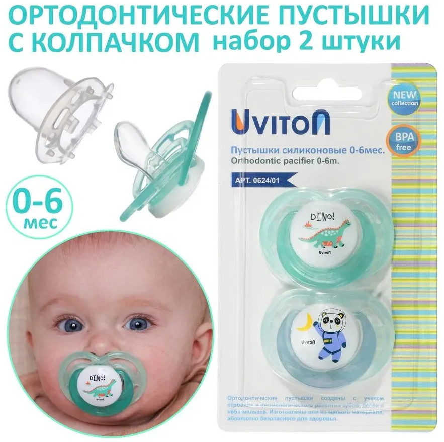 Uviton Набор пустышек ортодонтических с колпачками
