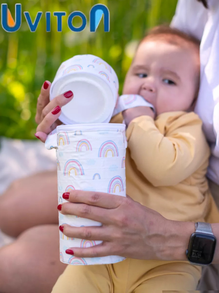 Термоупаковка для бутылочки — практичная вещь для сохранности и поддержания нужной температуры жидкости в дороге или на прогулке с малышом. В ней удобно брать с собой кипяченую воду или молочную смесь для кормления ребенка. Пригодится не только в холодное время года, но и летом. Она очень легкая и не занимает много места. Внутренний диаметр 7.5 см.