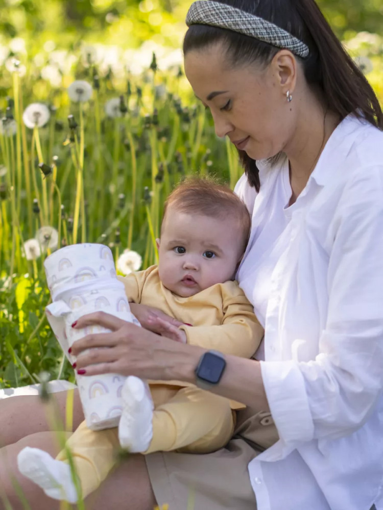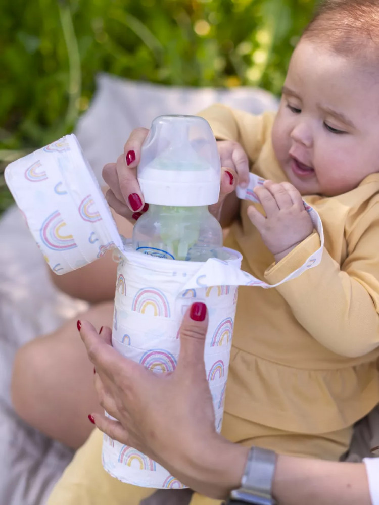• защищает бутылочку от ударов и царапин;