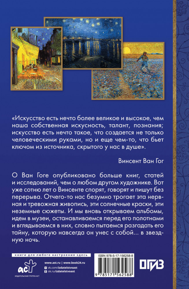 Серия: МиниАрт. Мастера и шедевры Винсент Ван Гог — личность поистине легендарная. Пожалуй, ни об одном художнике мира не было написано такого количества исследовательских работ; ни один факт из его жизни не был оставлен без внимания и много раз подробно анализировался, вызвав, тем не менее, огромное количество кривотолков. Ни одна личная жизнь не была настолько всесторонне изучена, что даже послужила сюжетом для монографий и романов, а отношения с братом Тео легли в основу известного фильма. Медики до сих пор спорят о том, чем же все-таки болел Ван Гог и как это повлияло на его творчество? Художники, представители разных течений и направлений, борются за право выбора Ван Гога своим учителем и гуру, в то время как он, самоучка, не был представителем ни одной из известных школ.