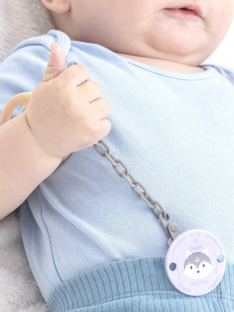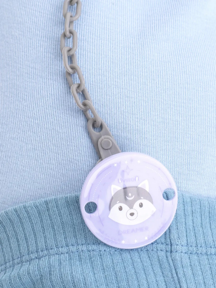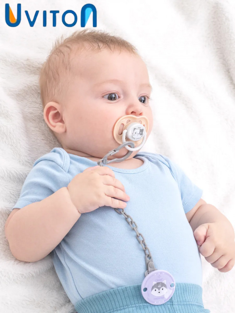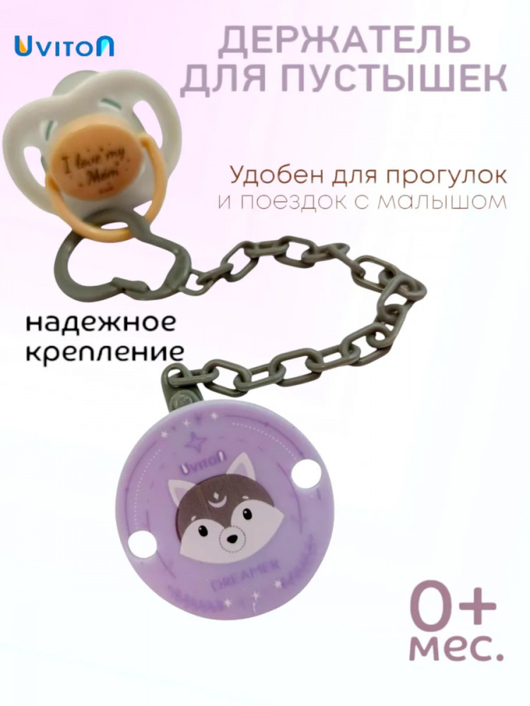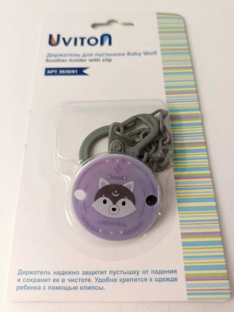 Держатель-клипса для пустышки от Uviton поможет любимой соске пустышке малыша всегда оставаться на месте. С помощью держателя для соски можно держать грызунок. С держателем соска/пустышка вашего малыша всегда будет в чистоте. Зажим-прищепка надежно крепится к одежде и не портит ее. На конце цепочки есть карабин, который зацепляется за кольцо пустышки. С ним можно играть, очаровательный дизайн точно понравится вашему малышу или малышке. Яркие цвета привлекут внимание ребенка и будут отлично смотреться на фоне детской одежды. Держатель для соски пустышки незаменим во время прогулок и путешествий. Вместе с одеждой для новорожденных детский держатель для соски прекрасно дополнит подарочный комплект на выписку в роддом, а так же это отличный подарок на выписку, подарок новорожденному.