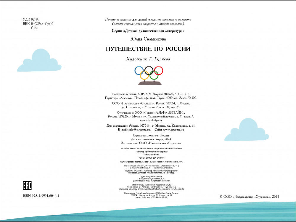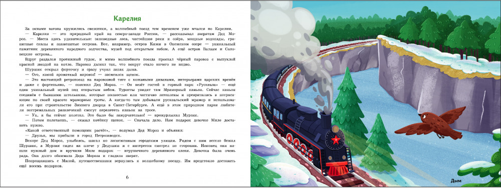 💳 Оплатить за товар можно при получении 🇰🇿 Есть бесплатная доставка по Казахстану от 1 дня 🎁 Копите бонусы с каждой покупки В первое утро нового года Дед Мороз обнаружил, что несколько ребят не получили свои подарки. Что же делать? Нужно срочно всё исправить! Пришлось Дедушке вместе со своими помощниками отправиться на волшебном поезде в путешествие по прекрасной необъятной стране — России. Хочешь узнать, какие приключения ждали на пути наших героев, в каких местах они побывали, что нового узнали, с кем познакомились? Тогда читай сказку, рассматривай картинки и вместе с путешественниками наслаждайся ароматами лимона, мандаринов, северных ягод, дыма, пончиков, хвои, мёда, полевых цветов, роз, лаванды, пряников и эскимо. Для этого надо просто потереть пальчиком самые большие картинки. |