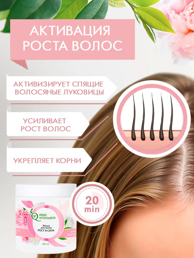 Индекс натуральности Маска для волос с экстрактом пиона «Рост и сила»