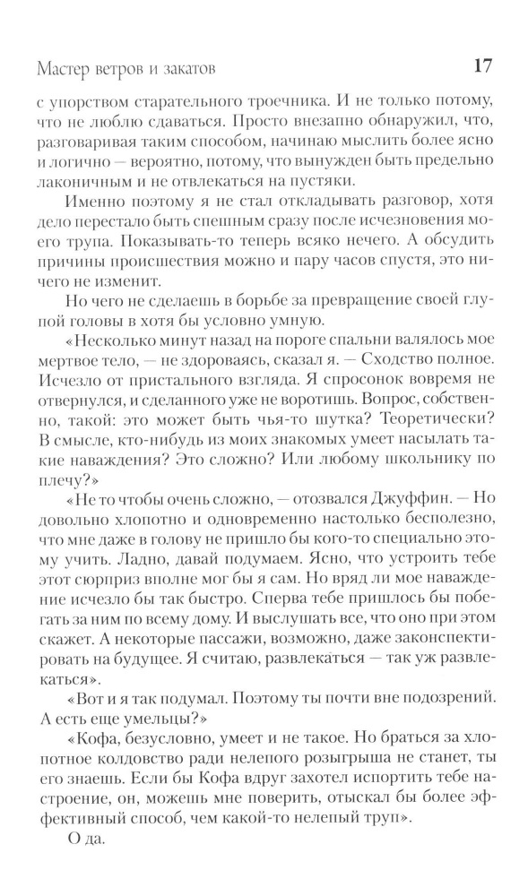 Мастер ветров и закатовВ данный момент этот товар отсутствует в продаже. Возможно, у нас найдется аналогичный или похожий товар здесь. Серия: Сновидения ЕХО Самый популярный автор начала ХХ1 века Макс Фрай дарит своим поклонникам новую серию книг! Таким образом, фантастические повести о приключениях Сэра Макса, работника Тайного Сыска в городе Ехо "Лабиринты Ехо" и "Хроники Ехо", пополнилась очередным шедевром - "Сновидения Ехо". |