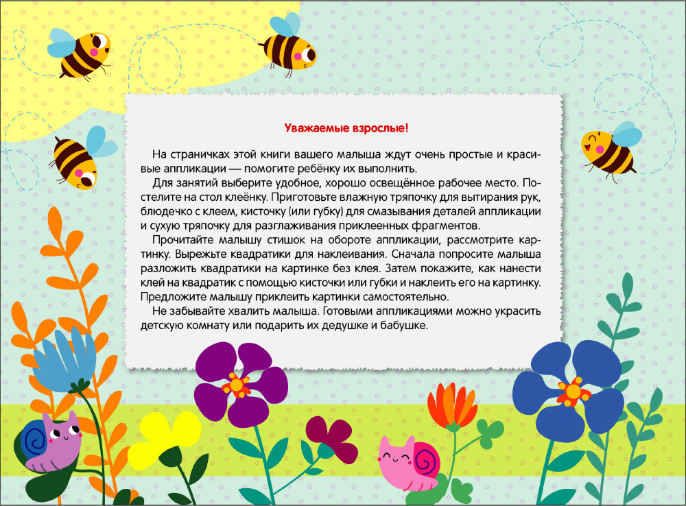 💳 Оплатить за товар можно при получении 🇰🇿 Есть бесплатная доставка по Казахстану от 1 дня 🎁 Копите бонусы с каждой покупки На страничках этой книги вашего малыша ждут очень простые и красивые аппликации - помогите ребёнку их выполнить. Для занятий выберите удобное, хорошо освещённое рабочее место. Постелите на стол клеёнку. Приготовьте влажную тряпочку для вытирания рук, клей для смазывания деталей аппликации и сухую тряпочку для разглаживания приклеенных фрагментов. |