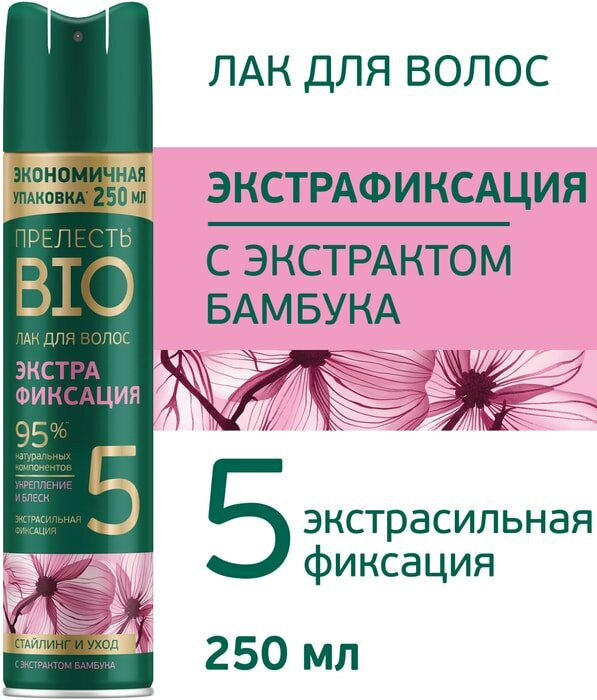 Прелесть Bio Лак для волос с экстрактом бамбука «Экстрафиксация»-25% +43