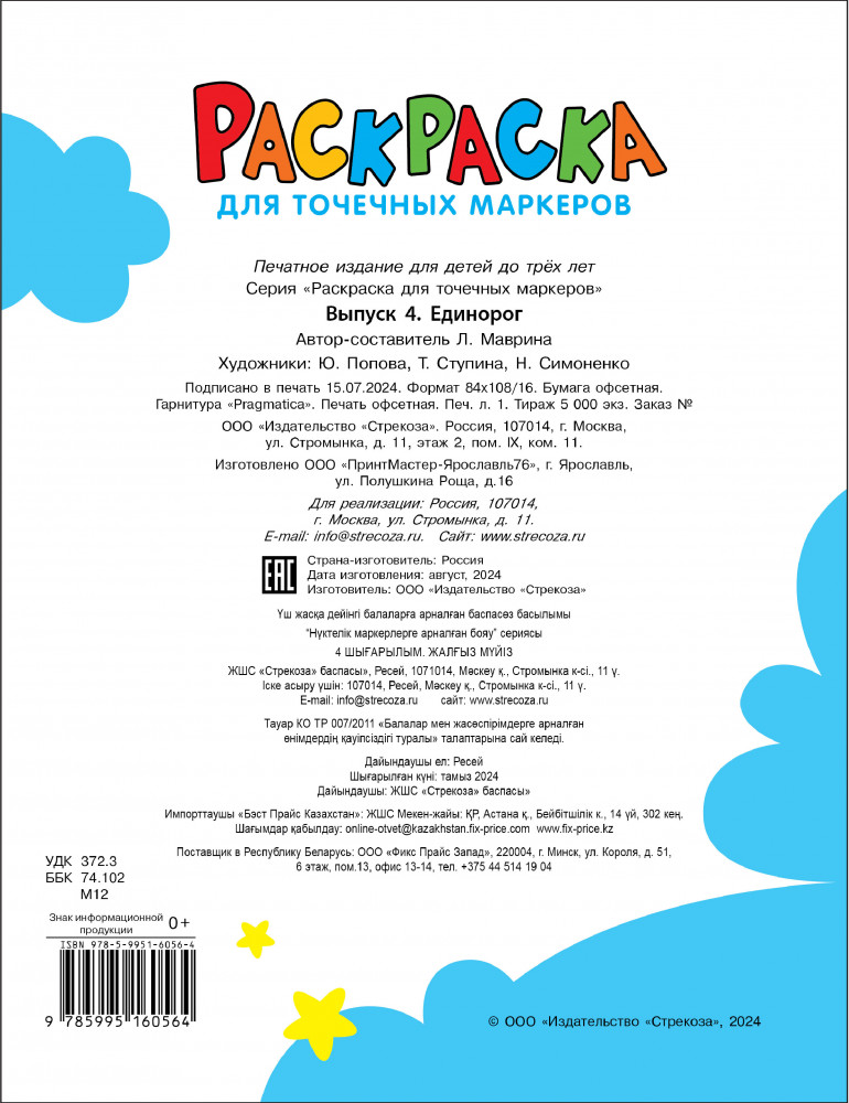 💳 Оплатить за товар можно при получении 🇰🇿 Есть бесплатная доставка по Казахстану от 1 дня 🎁 Копите бонусы с каждой покупки Серия: Раскраска для точечных маркеров Эта раскраска подходит для любых точечных маркеров. Рисовать ими — сплошное удовольствие! Открывается необыкновенный простор для творческого мышления детей. Яркие отпечатки точечных маркеров делают картинки нарядными и оригинальными. |