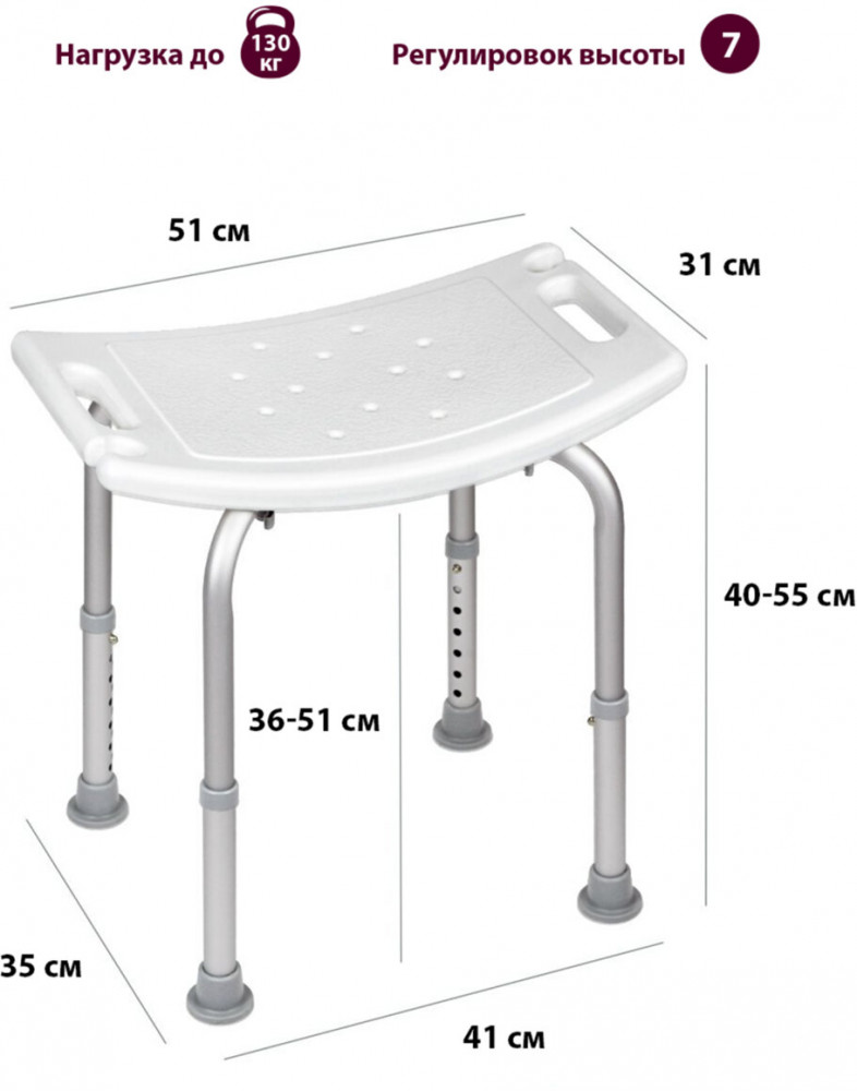 💳 Оплатить за товар можно при получении 🇰🇿 Есть бесплатная доставка по Казахстану от 1 дня 🎁 Копите бонусы с каждой покупки Стул-сиденье предназначен для приёма водных процедур в ванной комнате или душевой. Особенно подходит людям пожилого возраста, беременным женщинам, людям с ограниченными возможностями, восстанавливающимся после травм и болезней. Прямоугольное сиденье размером 31×51 см изготовлено из прочного ABS пластика. Оснащено боковыми ручками и выемками для душевой лейки с обеих сторон и отверстиями для стока воды по периметру. 2 отверстия под душевую лейку, диаметр отверстий — 3 см. |
