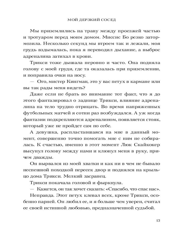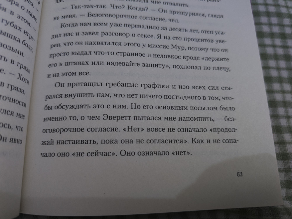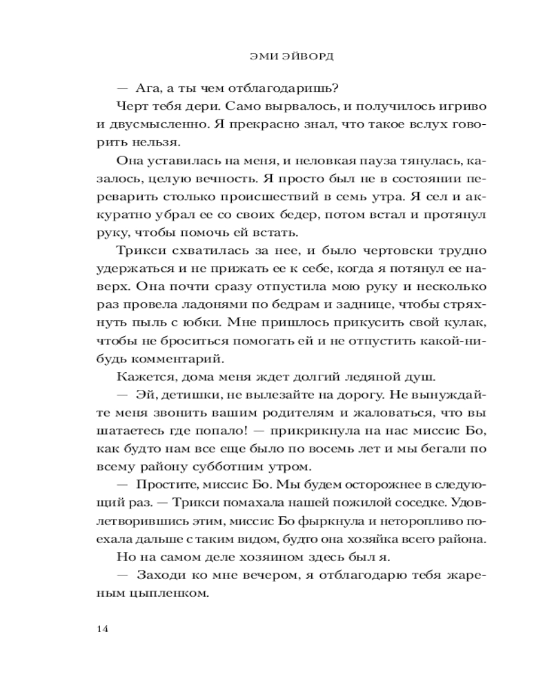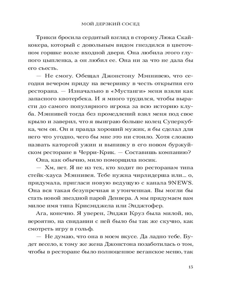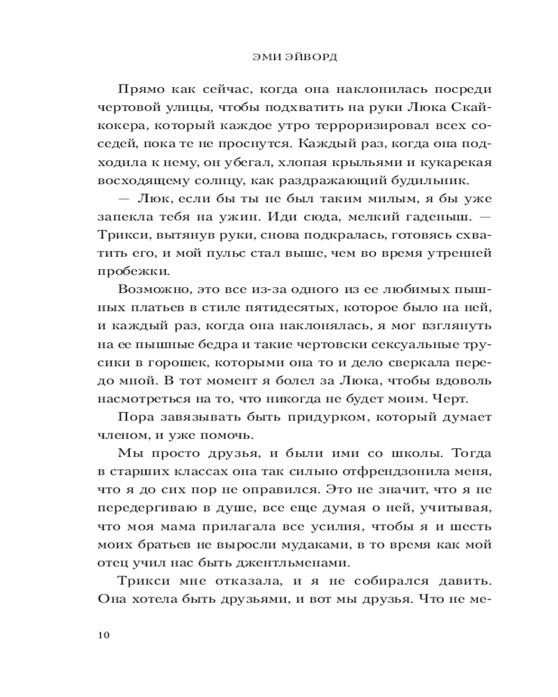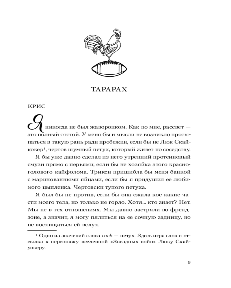 Данная книга начинается с знакомства главными героями книги Трикси наша жгг библиотекарь , веган с пышными формами , что необычно для эротических романов и её парень Крис звезда квотербека уже звучит как начало клише , но дайте книге шанс она вас удивить. Во время чтения данной книгой мне было приятно , что отличает её это здоровые отношения между героями где они проговаривают все это и Крис спрашивает у неё разрешение, говорит комплименты и идёт на защиту Трикси. Добавлю то , что шутки в книге к месту особенно про её петуха который борится с Крисом Люк Скайкокер лучший! Если вы устали от эротических романов где происходит драма и хочется прочитать про спокойные здоровые отношения где все хорошо то это книга самое то как девушке с пышными формами приятно знать , что есть такие милые романы Если устали от дарк романов или прочитали тяжёлую то тоже берите рекомендую