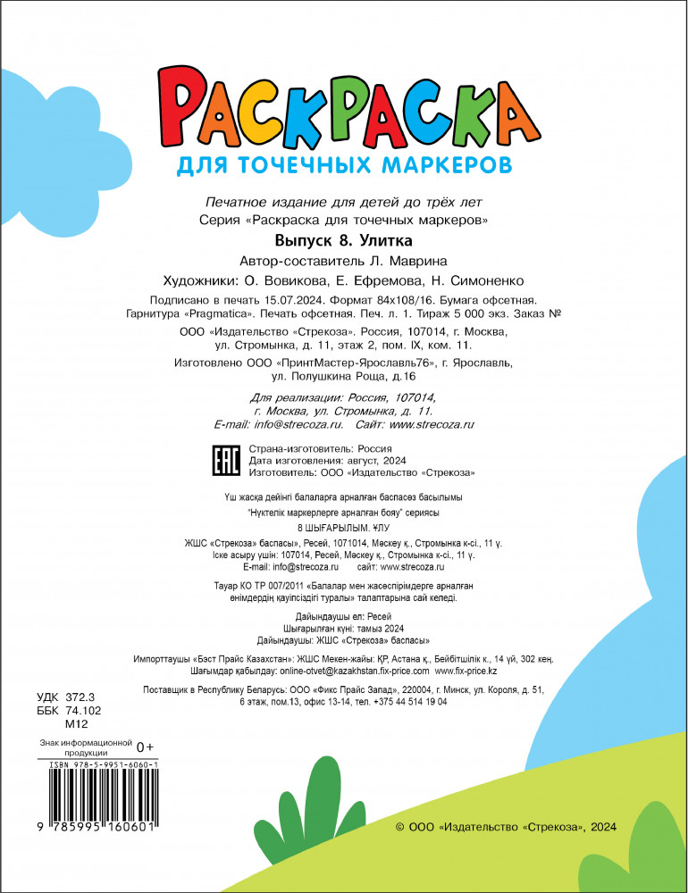 Раскраска для точечных маркеров. Улитка. Выпуск 8-40% +7
