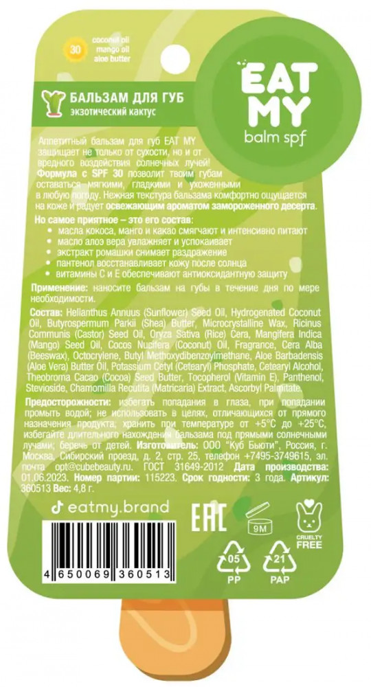 Eat my Бальзам для губ «Экзотический кактус» SPF 30
