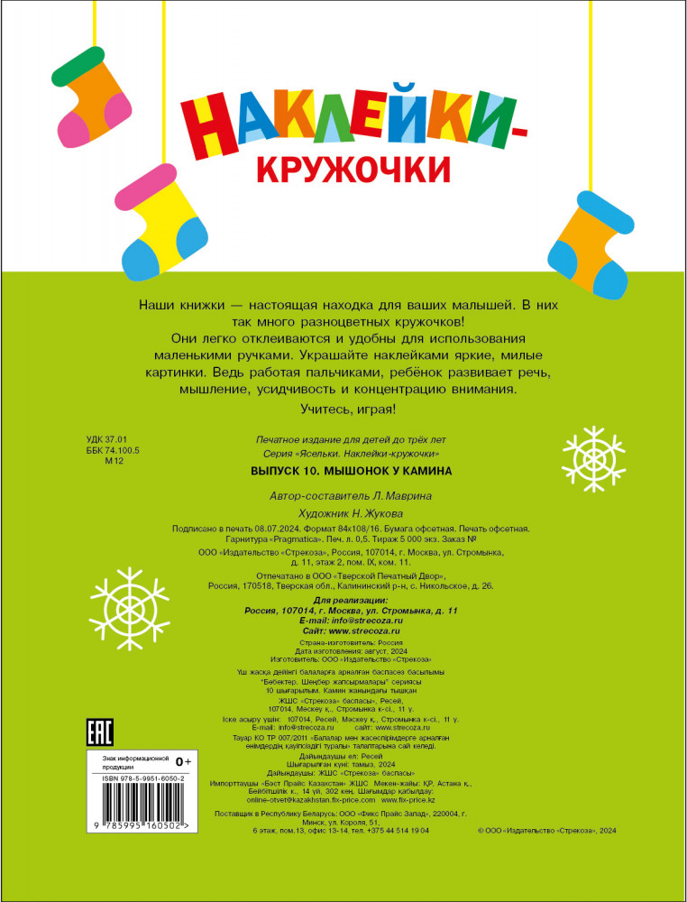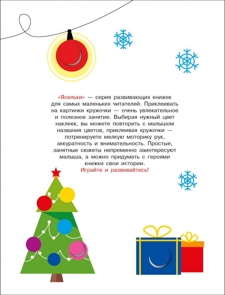💳 Оплатить за товар можно при получении 🇰🇿 Есть бесплатная доставка по Казахстану от 1 дня 🎁 Копите бонусы с каждой покупки Серия: Ясельки. Наклейки-кружочки «Ясельки» — серия развивающих книжек для самых маленьких читателей. Приклеивать на картинки кружочки очень увлекательное и полезное занятие. Выбирая нужный цвет наклеек, вы можете повторить с малышом названия цветов, приклеивая кружочки — потренируете мелкую моторику рук, аккуратность и внимательность. Простые занятные сюжеты непременно заинтересуют малыша, а можно придумать с героями книжки свои истории. |