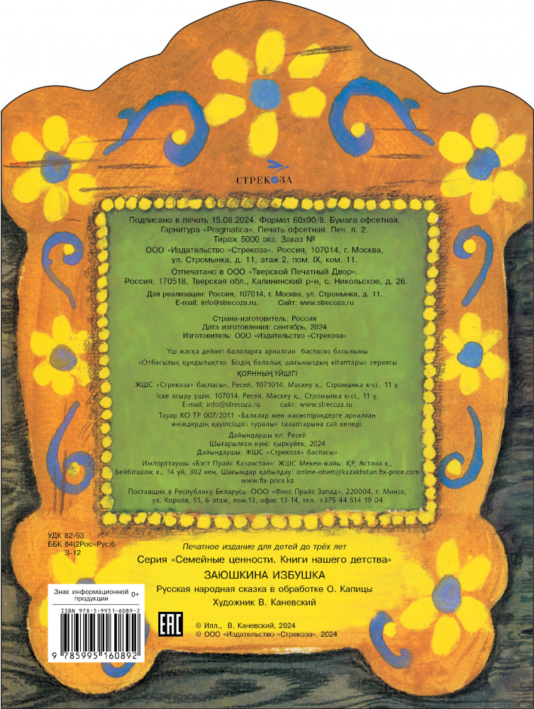 💳 Оплатить за товар можно при получении 🇰🇿 Есть бесплатная доставка по Казахстану от 1 дня 🎁 Копите бонусы с каждой покупки В вашем детстве наверняка было много замечательных любимых книг. Давайте познакомим с ними и новое поколение читателей. Однажды добрый заюшка пустил к себе в дом лису, а она его из дома-то и выгнала! Пытались помочь бедному зайцу и собаки, и волк, и медведь. Но только храбрый петушок смог справиться с лисой! Оригинальная вырубка книги напоминает домик. Поэтому можно не просто читать сказку, но и играть с ребенком. |