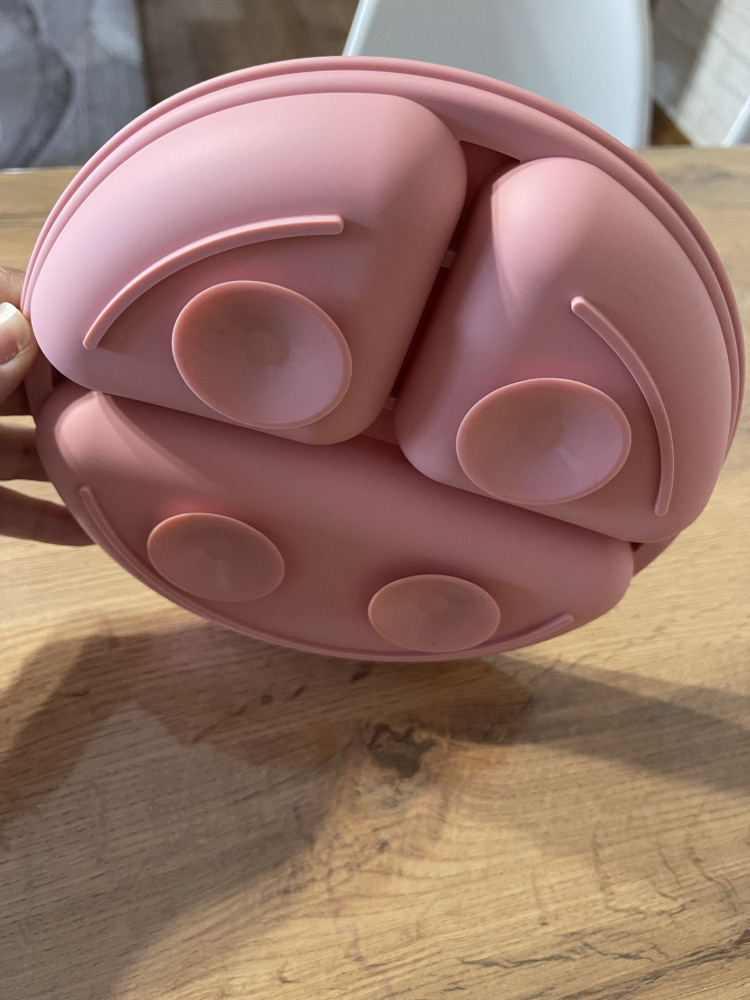 Классная тарелочка , материал качественный, никаких посторонних запахов нет. Присоски держатся крепко, ребенок 1,3 года не смогла оторвать от стола . Упаковано хорошо , и так как тарелка из пищевого силикона можно мыть в посудомоечной машине, для меня это прям огромный плюс. Рекомендую 👍🏼