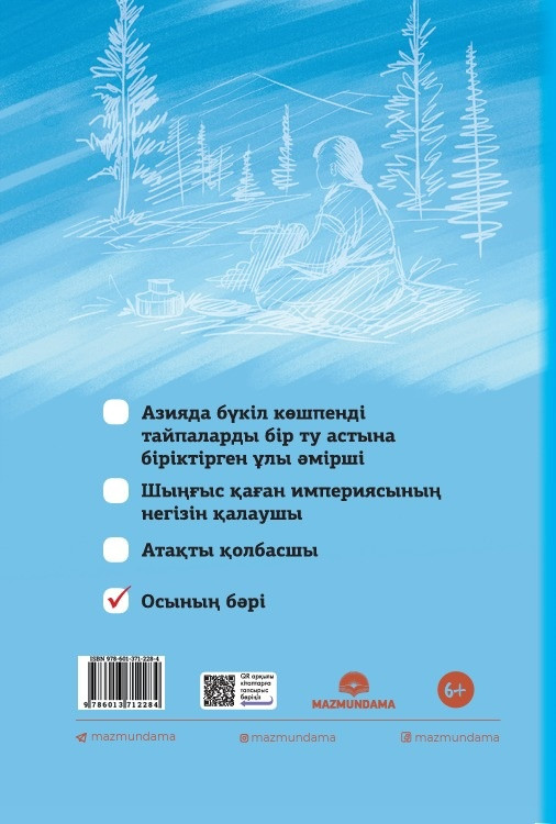 Шыңғыс қаған кім?В данный момент этот товар отсутствует в продаже. Возможно, у нас найдется аналогичный или похожий товар здесь. Серия: Ол кім? Бұл не? Азияда бүкіл көшпенді тайпаларды бір ту астында біріктірген ұлы әмірші. Шыңғыс қаған империясының негізін қалаушы. Атақты қолбасшы. |