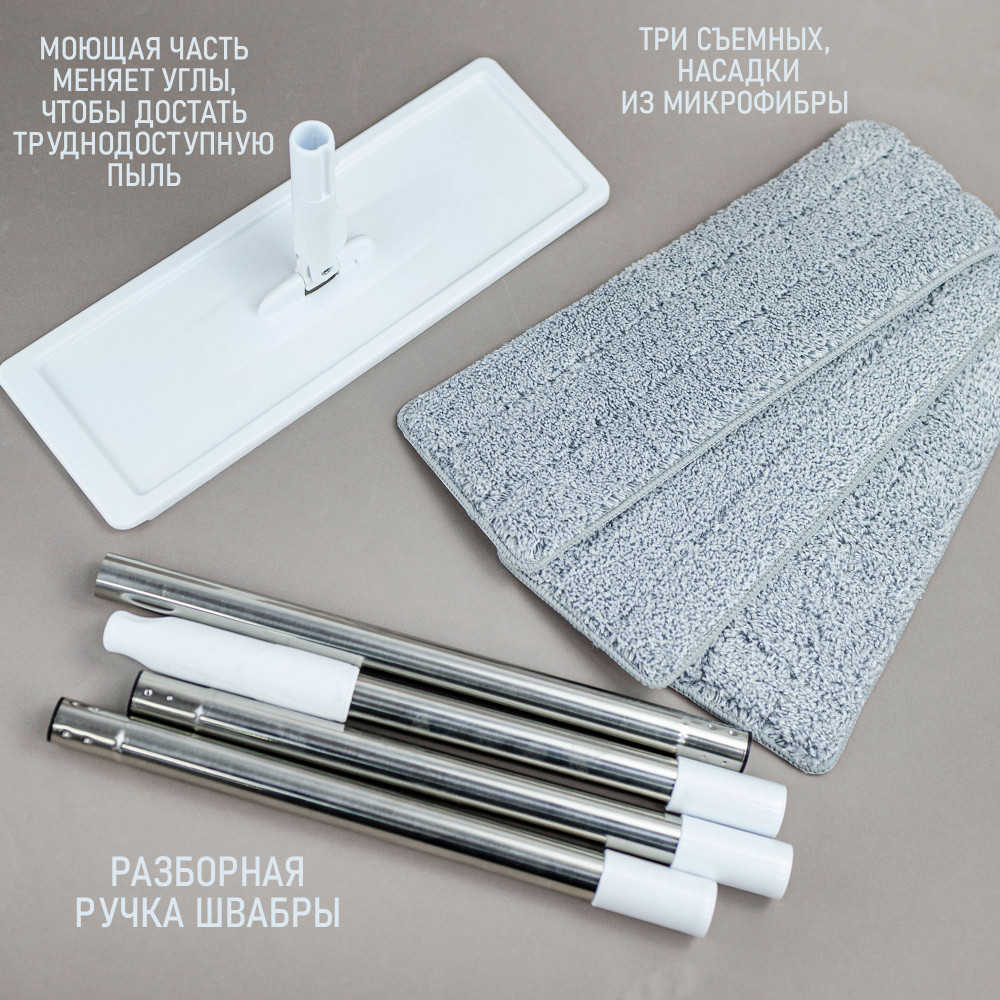 • экологичность: многоразовые микрофибровые насадки сокращают количество отходов по сравнению с одноразовыми аналогами. |