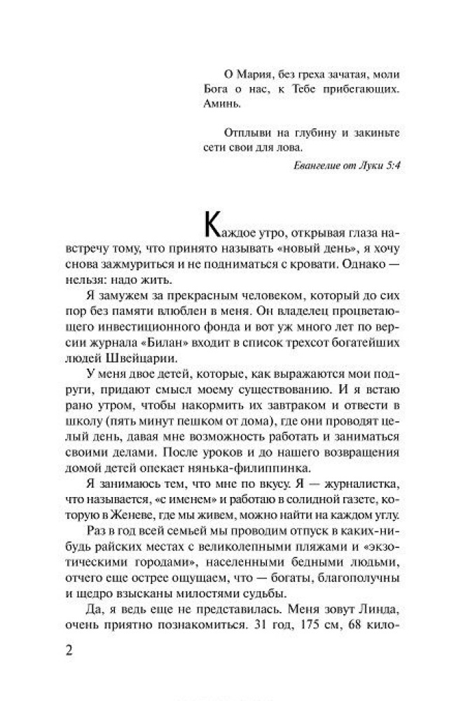 Книгу прочитала меньше, чем за неделю! Честно сказать, что 11 минут и Алхимик меня впечатлили больше...и с самых первых страниц. Но и эту книгу стоит прочитать. Читается не сложно, но постоянно сопереживала и пыталась понять внутренний мир Линды. В целом я осталась очень довольна, но больше рекомендовала бы эту книгу к прочтению замужним девушкам и женщинам, находящимся в кризисе. И быстрой доставкой. И самой книгой. И ее содержанием.