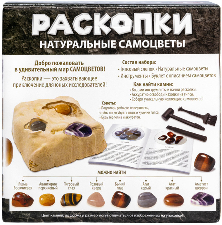 Десятое королевство Набор для раскопок «Раскопки. Натуральные самоцветы»В данный момент этот товар отсутствует в продаже. Возможно, у нас найдется аналогичный или похожий товар здесь. Набор для раскопок «Натуральные самоцветы» — это необычный набор! В нем юные исследователи могут найти 5 натуральных камней. Соберите всю коллекцию самоцветов, вошедших в эти наборы, среди них: яшма брекчиевая, авантюрин персиковый, тигровый глаз, розовый кварц, бычий глаз, агат серый, агат красный, аметист шеврон. Занятия «раскопками» развивают моторику, концентрацию и точность движений. Добытые фигурки можно использовать для других игр. |