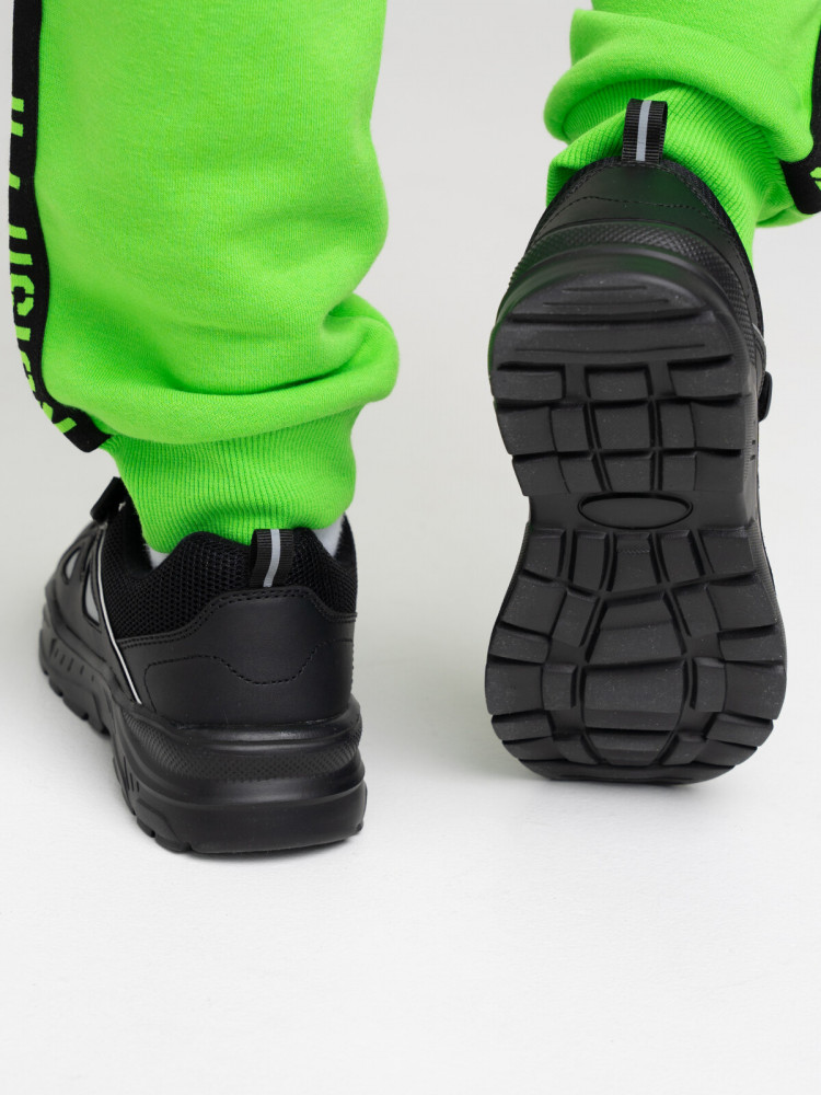 Кроссовки из комбинации искусственной кожи и воздухопроницаемой сетки. Кожаная стелька с анатомическим элементом обеспечивает правильную нагрузку на стопу. Формоустойчивый задник поддерживает стопу в правильном положении. Удобная застежка-липучка. Эластичные шнурки. Облегченная гибкая подошва с амортизацией.