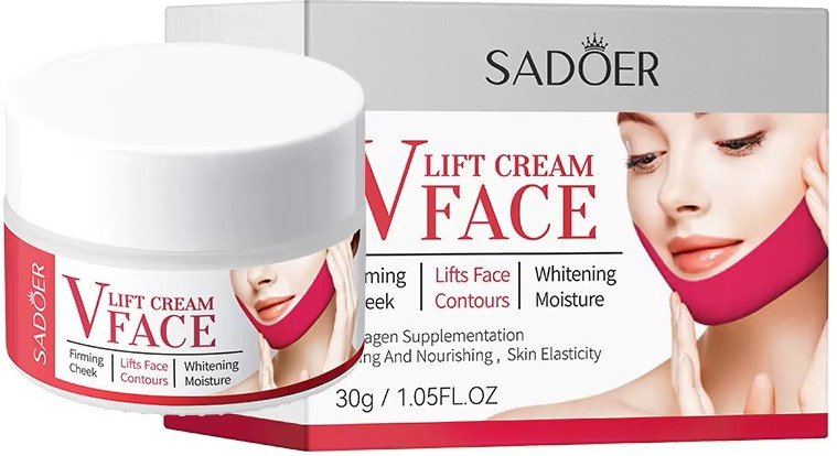 Омолаживающий крем для лица SADOER V Lift Face Cream возвращает коже молодость и красоту, обеспечивает заметный эффект лифтинга, подтягивает контуры лица, делая их более четкими. Крем вытягивает овал лица, делая его более контурированным, уменьшая эмуляцию и возрастные морщины, повышает упругость и эластичность, делает кожу гладкой и нежной. Моделирующий лифтинг крем для мгновенного и длительного подтягивающего эффекта, возвращения лицу четких контуров, для профилактики и уменьшения провисания тканей в области щек и подбородка. Омолаживающий крем для лица стимулирует обменные процессы в клетках кожи, способствует их активному обновлению, вырабатывает собственный коллаген и интенсивно увлажняет и придает здоровый цвет лица.