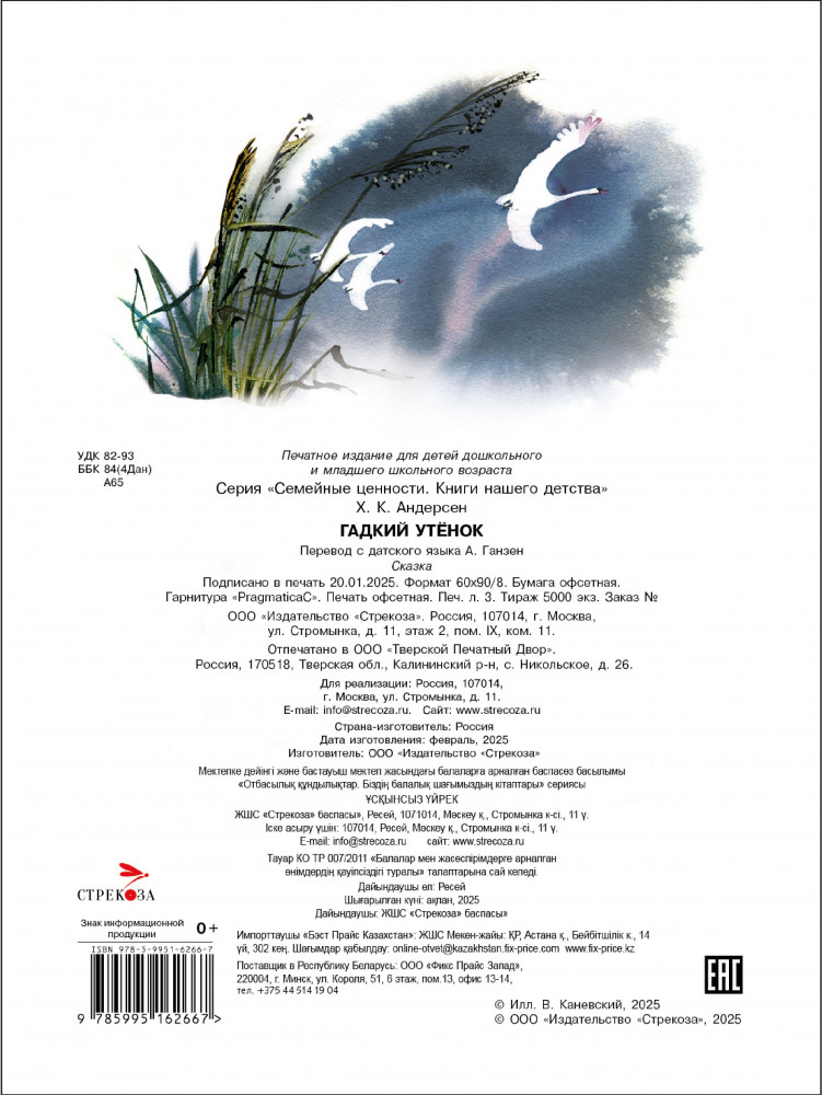 💳 Оплатить за товар можно при получении 🇰🇿 Есть бесплатная доставка по Казахстану от 1 дня 🎁 Копите бонусы с каждой покупки Серия: Семейные ценности. Книги нашего детства В вашем детстве наверняка было много замечательных любимых книг. Давайте познакомим с ними и новое поколение читателей. Сказка Ханса Кристиана Андерсена «Гадкий утёнок» давно уже стала классикой детской художественной литературы. Прочитав эту трогательную историю, дети поймут, что нельзя судить о ком-то только лишь по внешности. Ведь из гадкого утенка может вырасти прекрасный лебедь! |