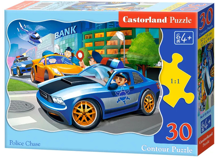 Castorland Puzzle Пазл «Полицейская погоня»В данный момент этот товар отсутствует в продаже. Возможно, у нас найдется аналогичный или похожий товар здесь. Сборка красочного пазла — это прекрасный способ для семейного досуга. Он позволит увлекательно и с пользой провести время, снять накопившийся стресс. Пазл представляет собой картинку, состоящую из некрупных деталей разной формы, соединяющихся замком, который делает конструкцию прочной. Цель — собрать их все воедино, чтобы получилась цельная картинка, которую затем можно оформить рамкой, багетом и повесить на стену. Каждая деталь имеет индивидуальную форму и легко соединяется с другой, поэтому у Вас непременно получится картина, собранная собственными руками. |