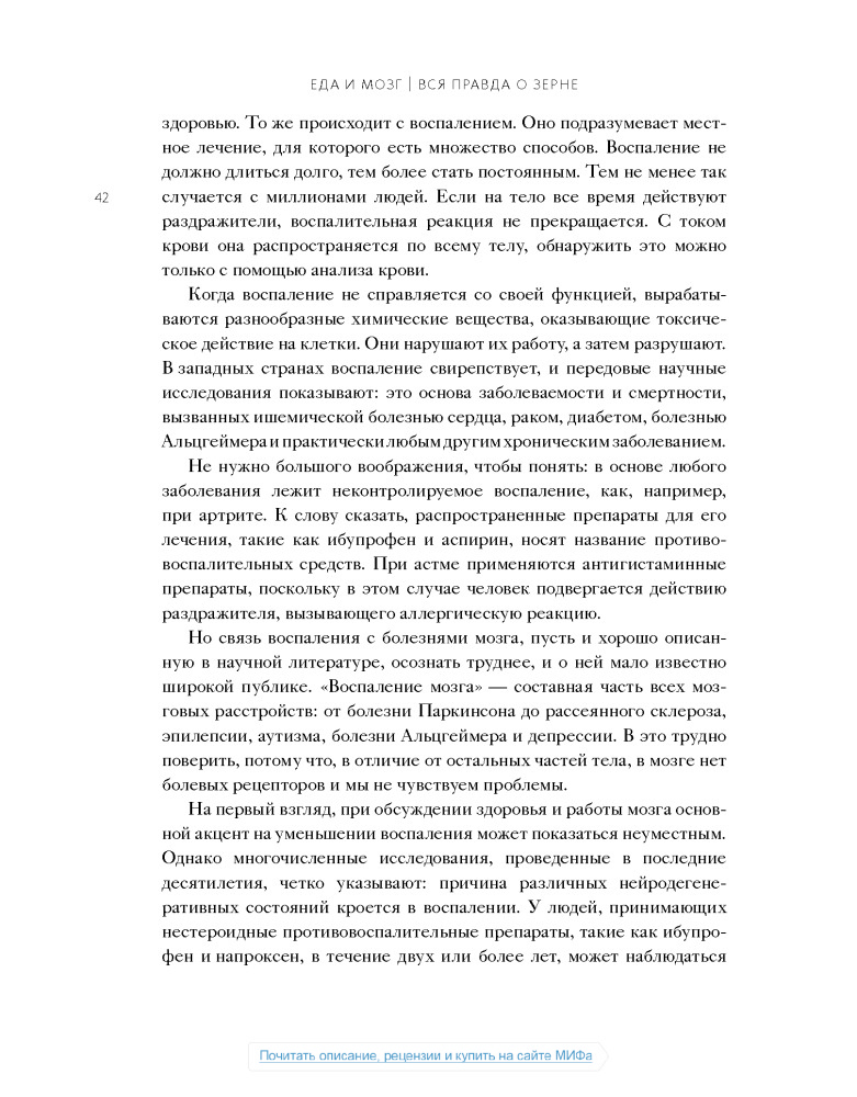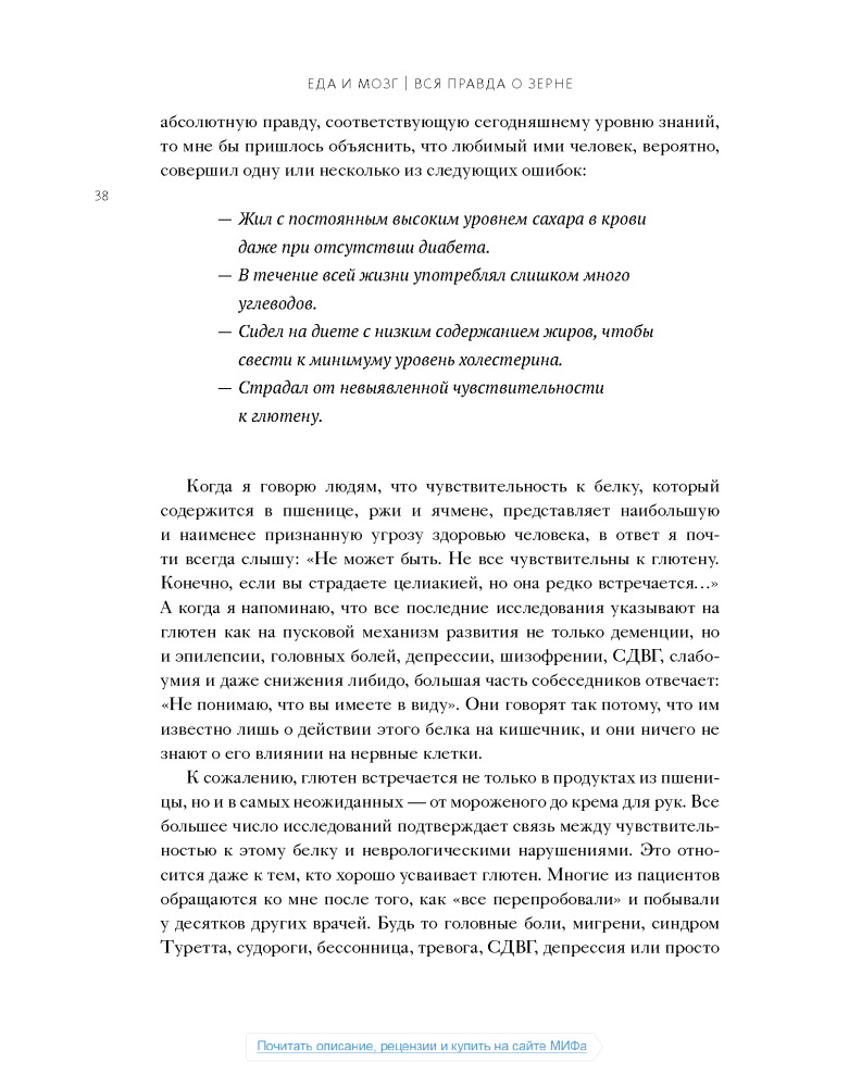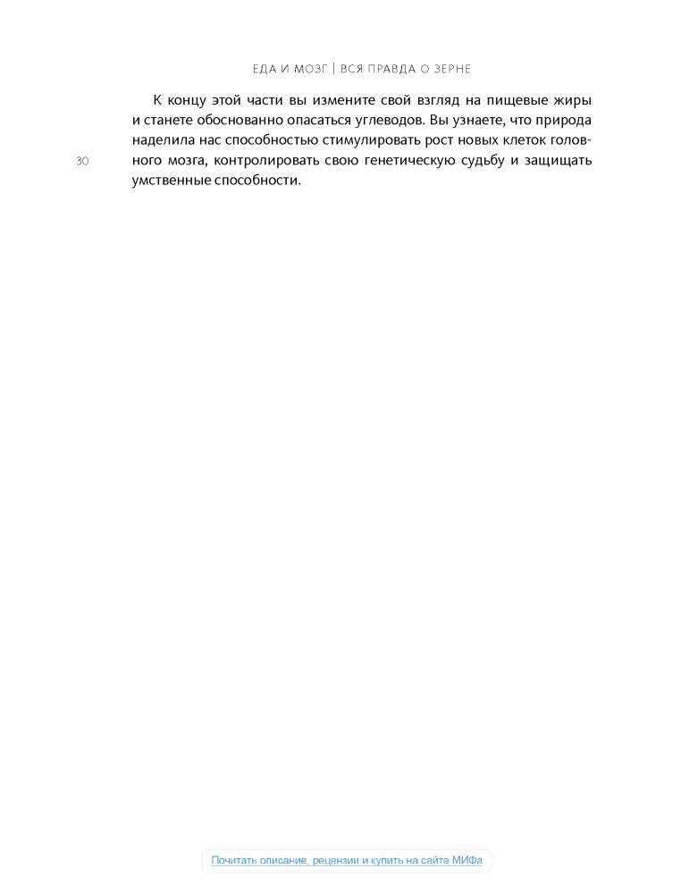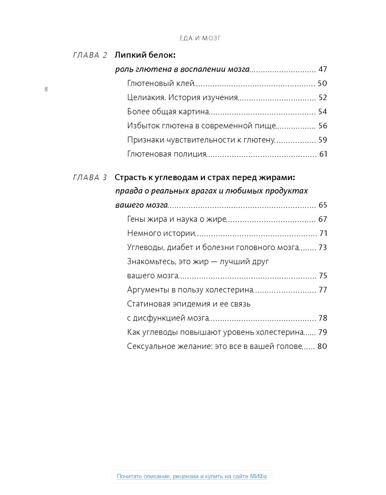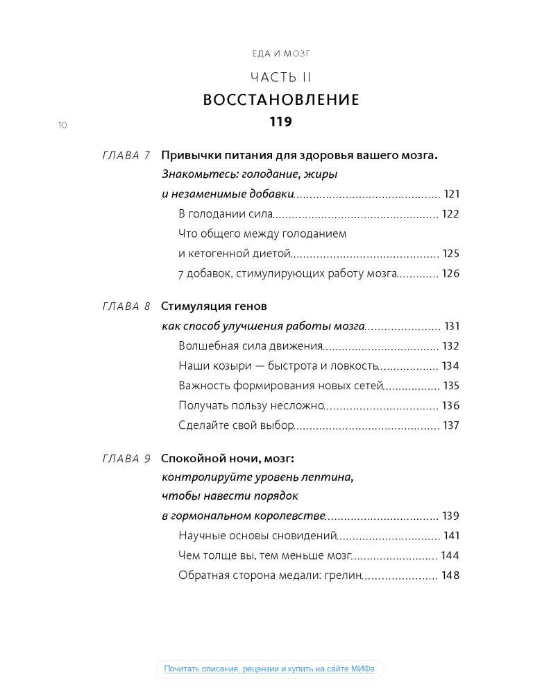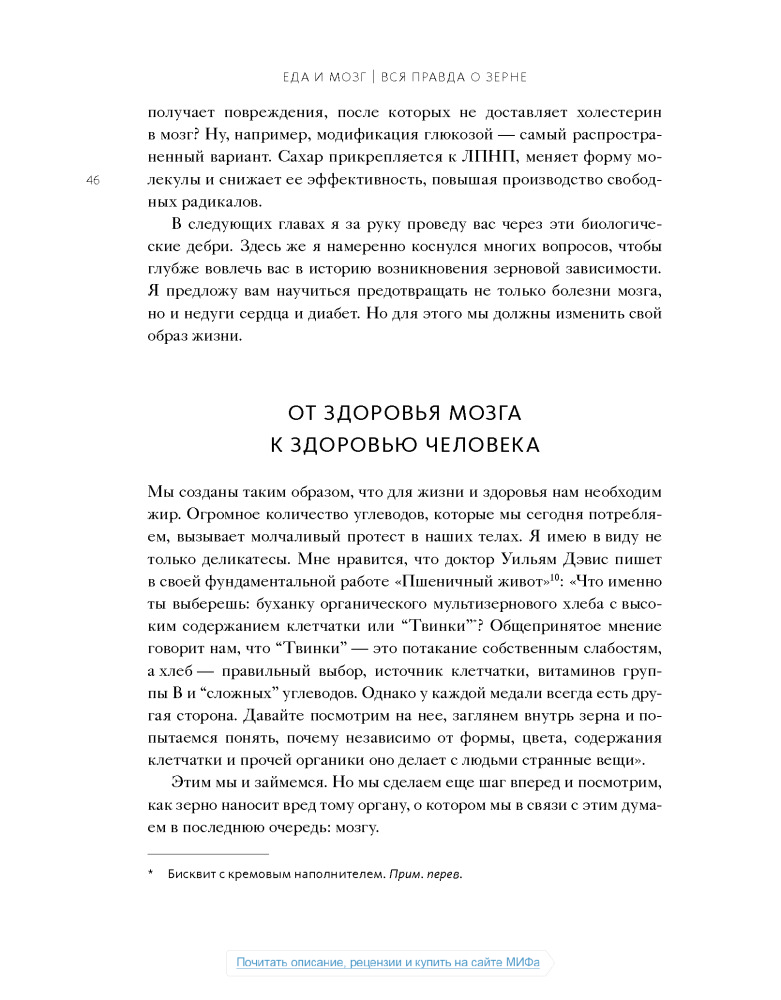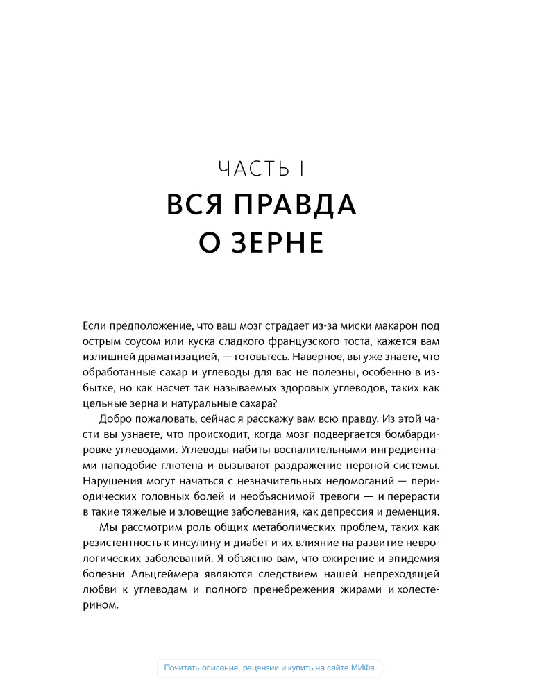 Настоящая книга не дотягивает до нормального учебника по медицине, а скорее что-то среднее между книгой фактов о мозге и любой брошюры о диете, или как сейчас модно:"Нон-фикшн". Некоторые вещи, написанные в этой книге, расходятся с понимаем "правильного питания", но не смотря на все доводы, мы должны помнить что главное в пище- это баланс.