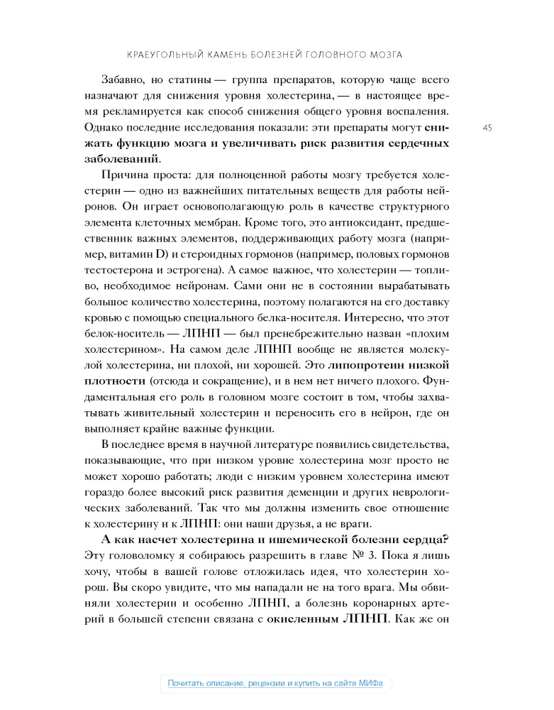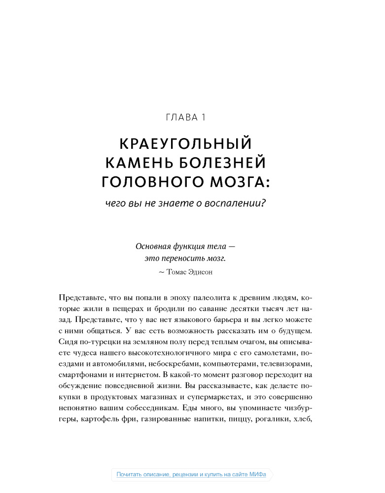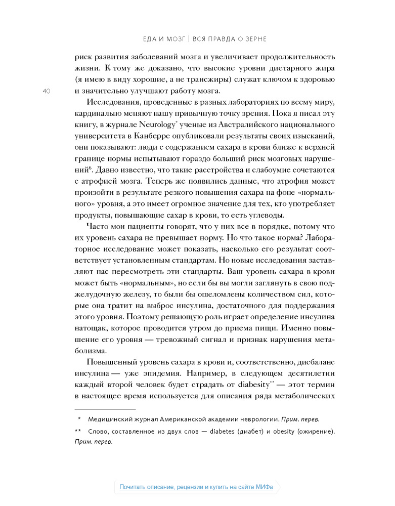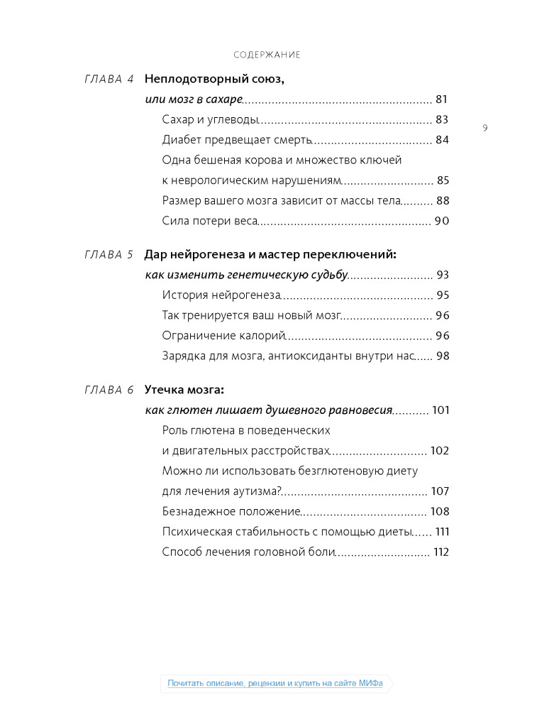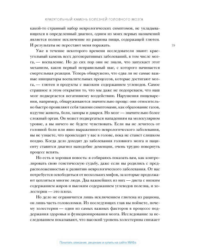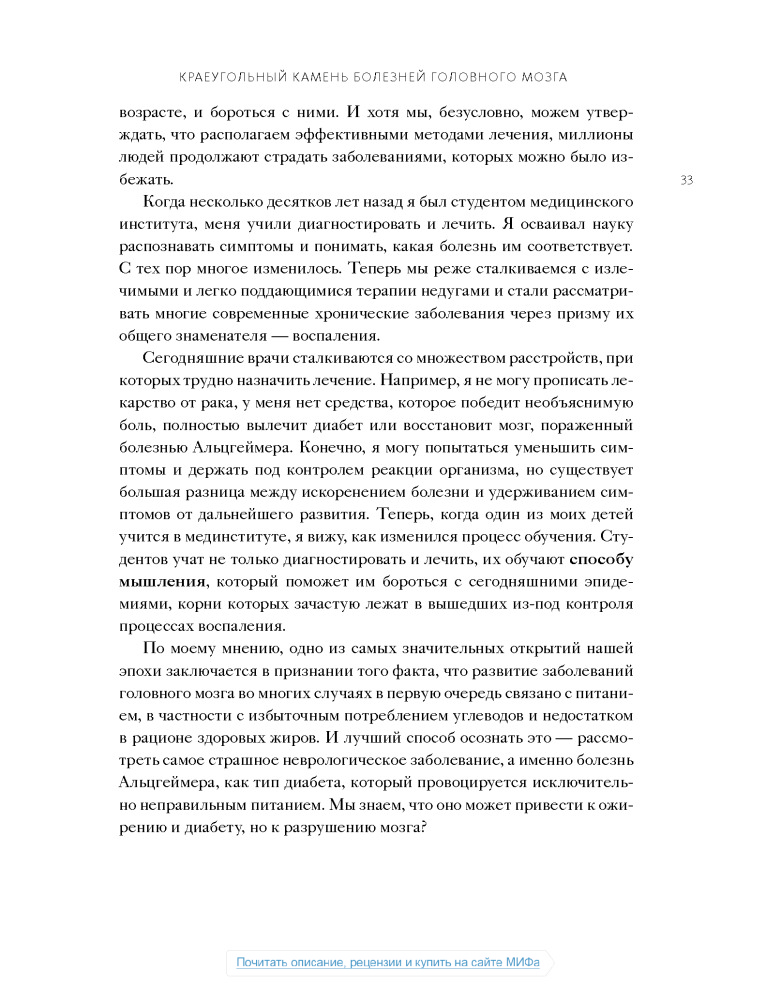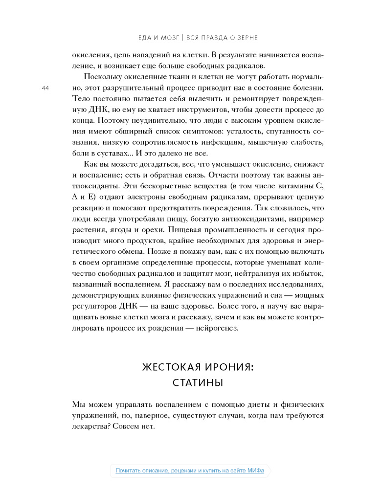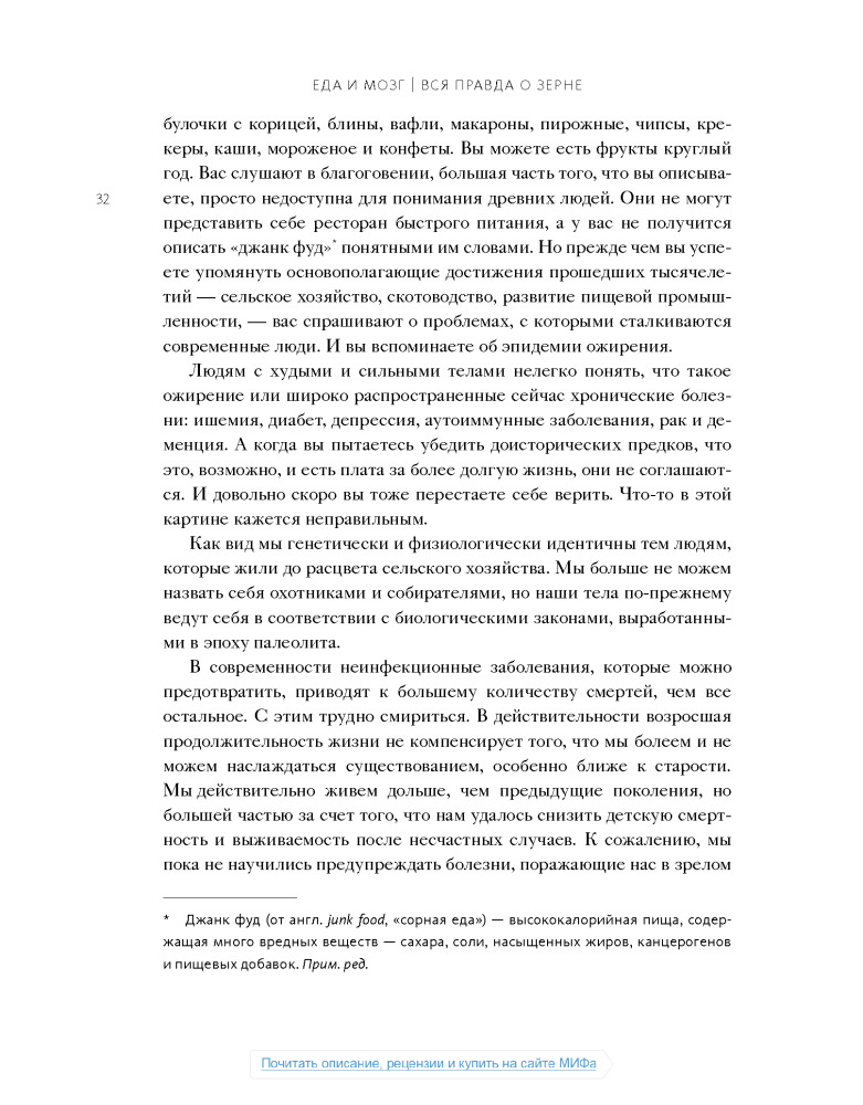 Настоящая книга не дотягивает до нормального учебника по медицине, а скорее что-то среднее между книгой фактов о мозге и любой брошюры о диете, или как сейчас модно:"Нон-фикшн". Некоторые вещи, написанные в этой книге, расходятся с понимаем "правильного питания", но не смотря на все доводы, мы должны помнить что главное в пище- это баланс.