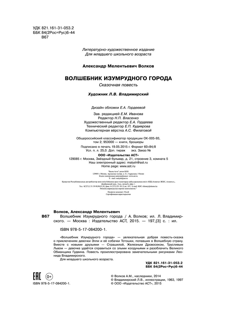 💳 Оплатить за товар можно при получении 🇰🇿 Есть бесплатная доставка по Казахстану от 1 дня 🎁 Копите бонусы с каждой покупки Сказочная повесть "Волшебник Изумрудного города" является переработкой сказки американского писателя Ф.Баума. Она рассказывает об удивительных приключениях девочки Элли и ее друзей в Волшебной стране. |