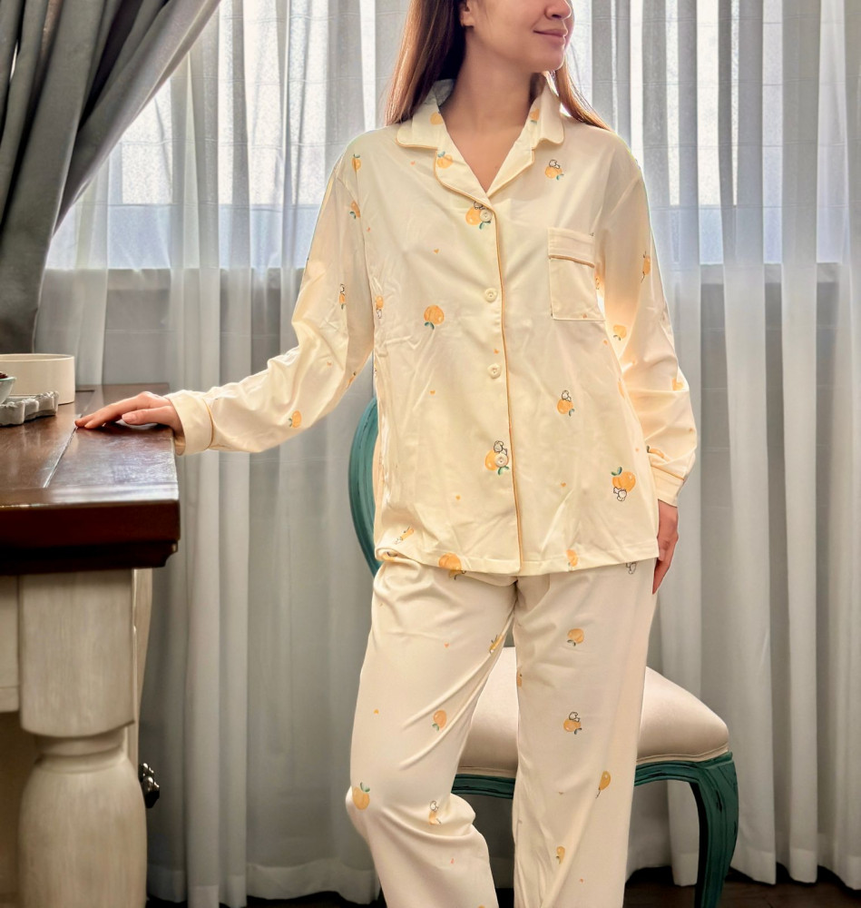 Погрузитесь в мир уюта с нашей пижамой "Мила", выполненной из мягкого хлопка с добавлением синтетики. Этот стильный комплект с очаровательным рисунком персиков и зайчиков подарит вам комфорт и хорошее настроение!