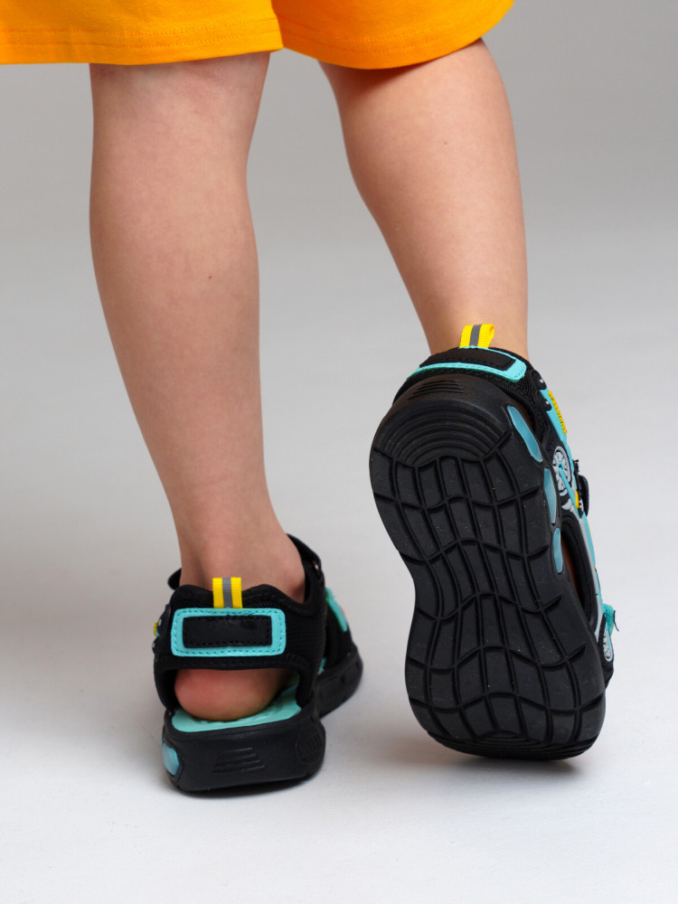 Сандалии детские для мальчика. Сандалии из дышащего текстиля. Стелька из ЭВА легко моется. Текстильная подкладка c высоким содержанием хлопка обладает высокой гигроскопичностью. Удобные ремни с липучками позволяют регулировать объем. Гибкая и легкая подошва из ЭВА имеет мигающие элементы flashlights.