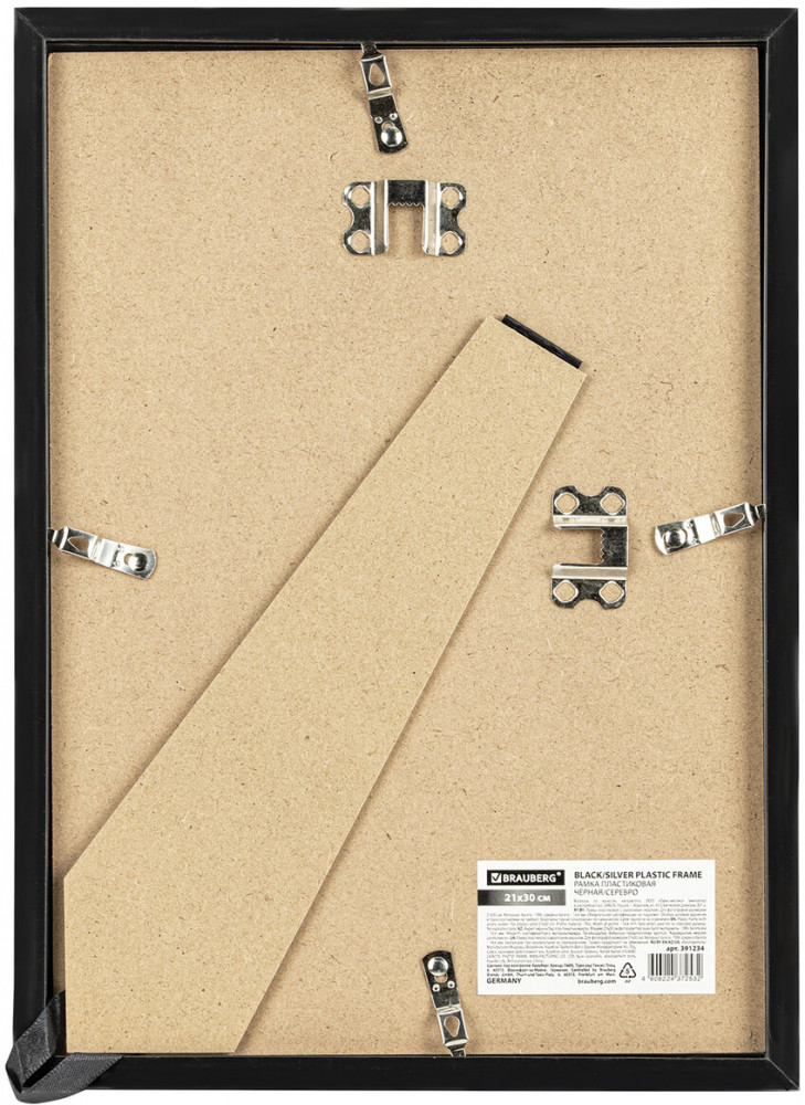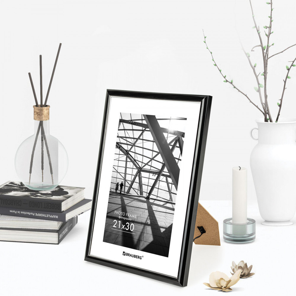 Рамка Brauberg «Original Line» для фотографий, дипломов, сертификатов и других ценных документов благодаря своему лаконичному дизайну будет гармонично смотреться как в домашнем, так и в офисном интерьере, в магазинах, салонах и других учреждениях. Рамка стандартного формата А4 (21×30 см) выполнена из ПВХ в черном цвете с изюминкой в виде серебристой линии, за счет чего отлично впишется как в домашний, так и в деловой интерьер. Имеется возможность вертикального и горизонтального подвеса, а также имеется подставка для установки рамки на столе.