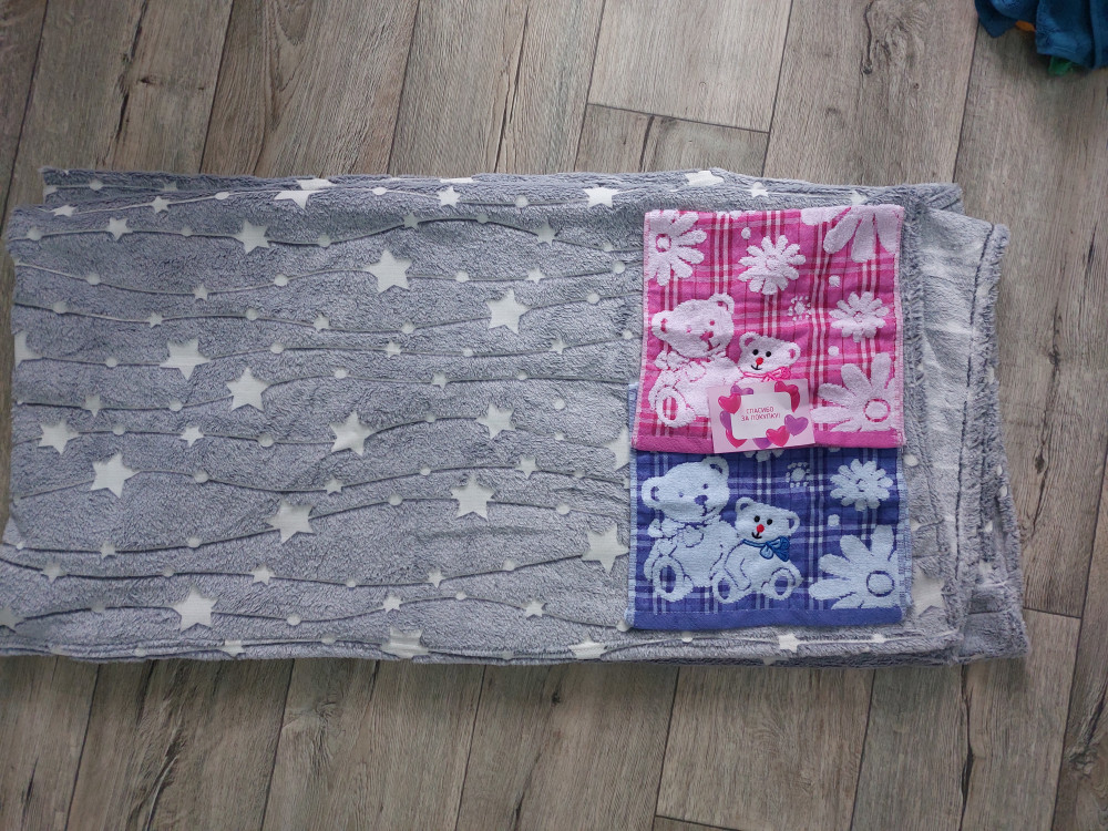 Мягкое, приятное на ощупь. Ждём ночи, чтоб проверить на свечение. Спасибо продавцу за презентик-2 мини полотенца. Прикольные, мягкие сын очень доволен.