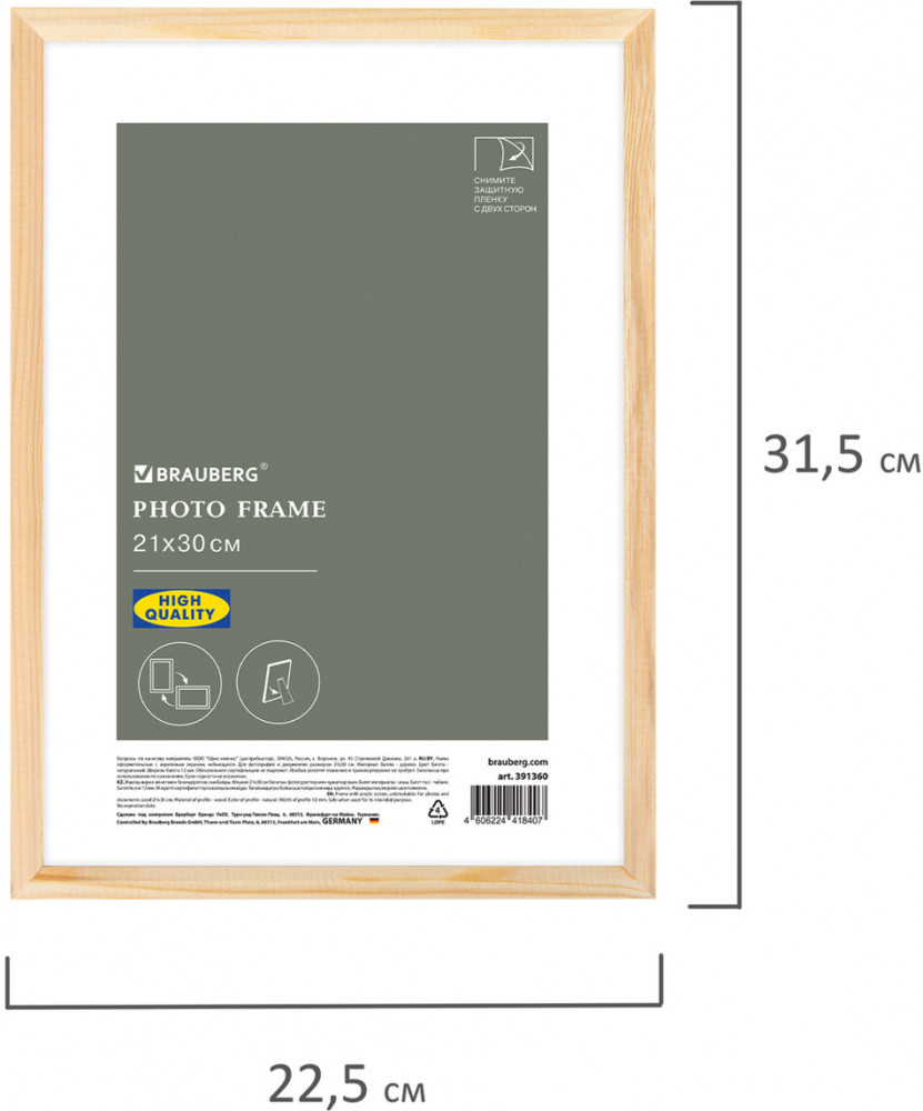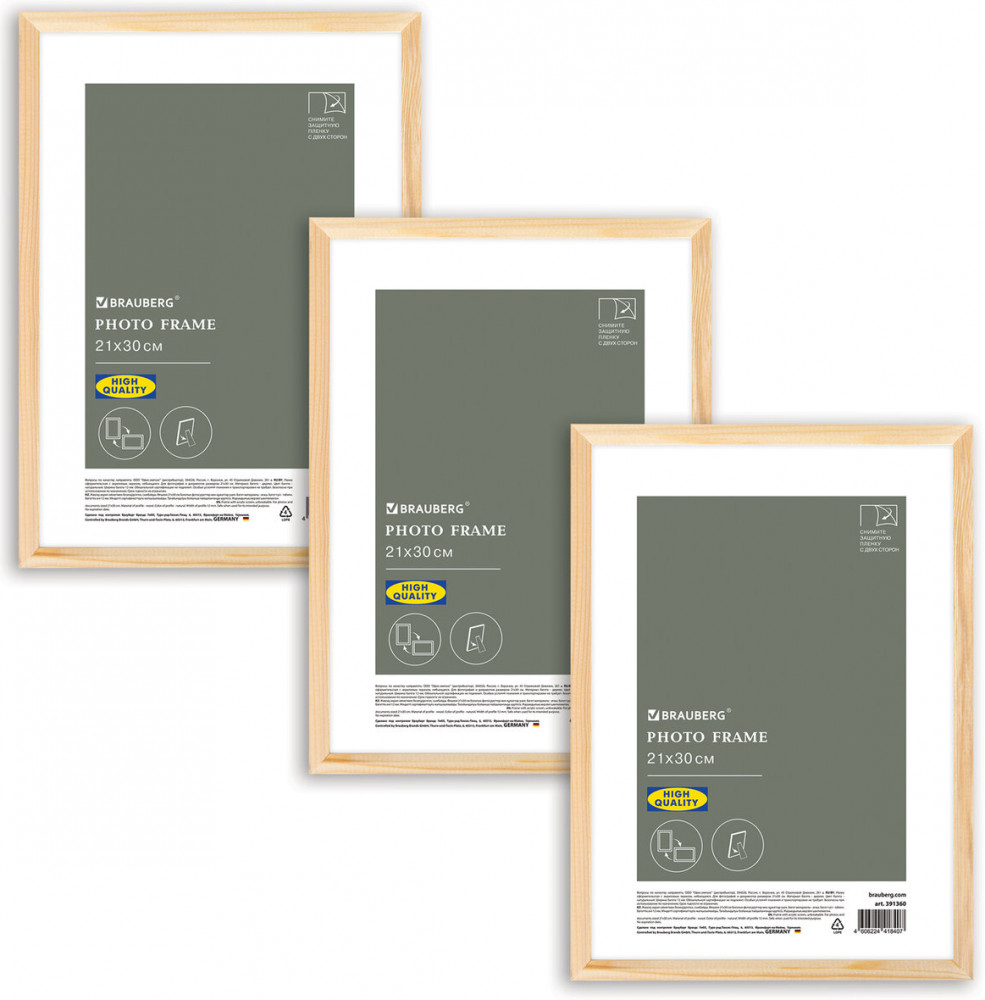 Комплект из 3-х рамок Brauberg «Woodray» в стиле Ikea, которые помогут оформить фотографии, сертификаты, грамоты или любые другие ценные документы в едином стиле, что актуально для современного домашнего и офисного интерьера. Рамки стандартного формата А4 (21×30 см) выполнены из дерева натурального цвета, за счет чего отлично впишутся как в домашний, так и в деловой интерьер. У каждой рамки имеется возможность вертикального и горизонтального подвеса, а также имеется подставка для установки рамки на столе.