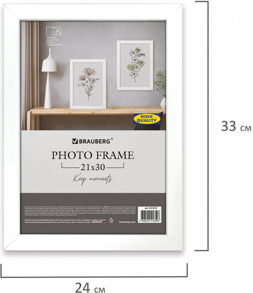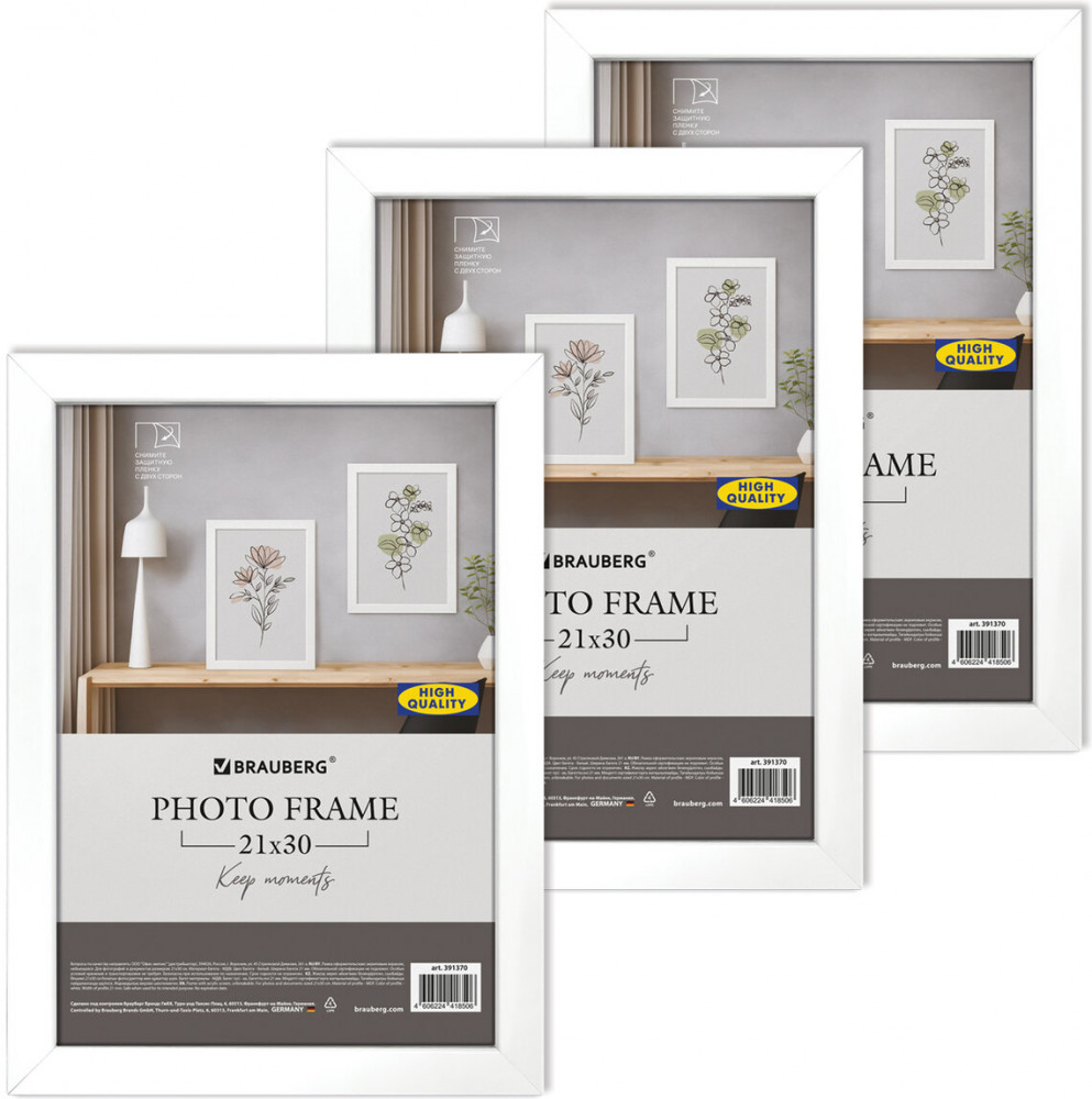 Комплект из 3-х рамок Brauberg «Idea» в стиле Ikea, которые помогут оформить фотографии, сертификаты, грамоты или любые другие ценные документы в едином стиле, что актуально как для современного домашнего интерьера, так и для офисного. Рамки стандартного формата А4 (21×30 см) выполнены из МДФ универсального белого цвета за счет чего отлично впишутся как в домашний, так и в деловой интерьер. У каждой рамки имеется возможность вертикального и горизонтального подвеса, а также имеется подставка для установки рамки на столе.