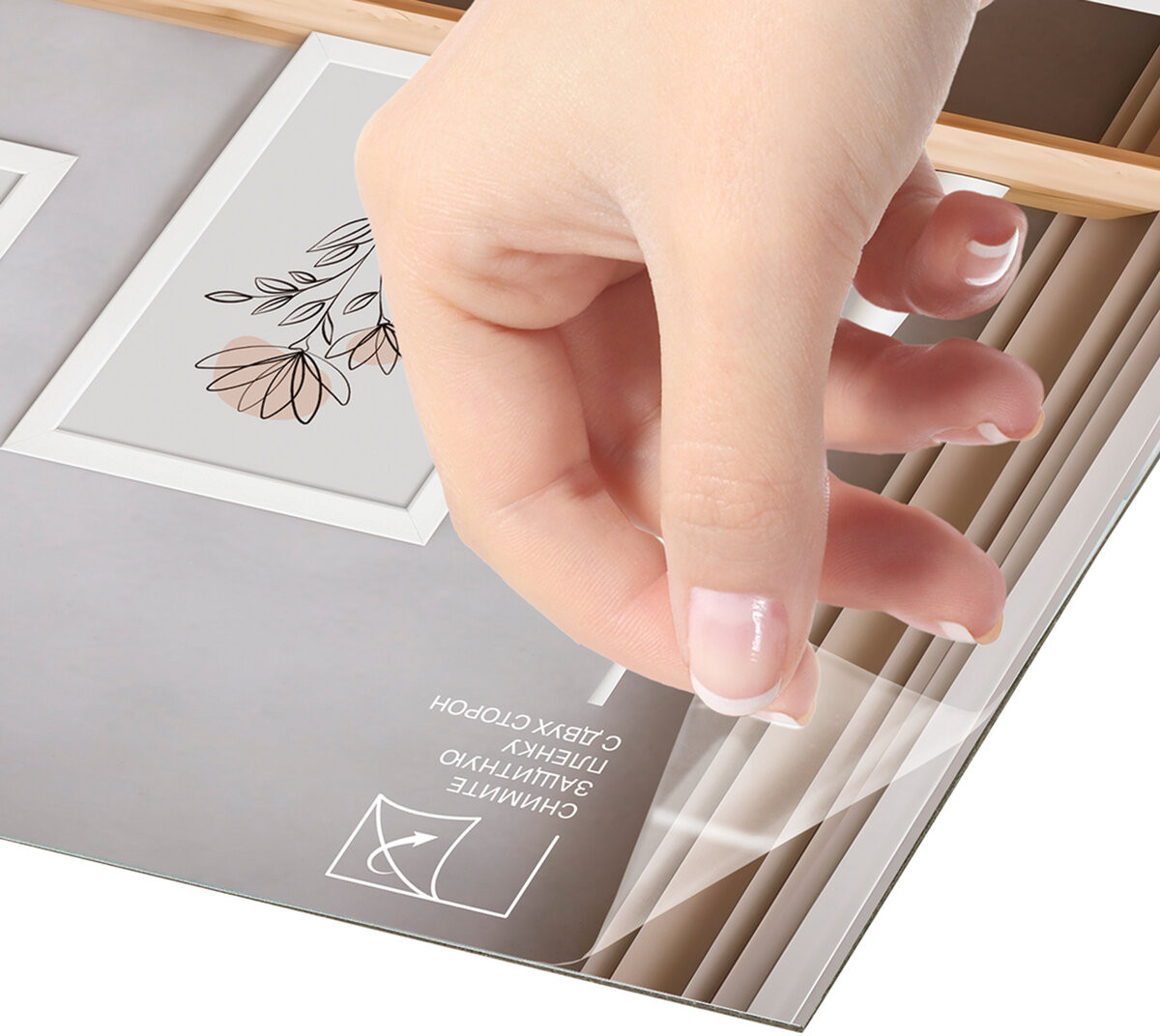 Ширина багета с передней части рамки — 21 мм, ширина багета с задней части рамки — 9 мм, высота багета — 12 мм. Вставка из акрила вместо обычного стекла делает рамки менее хрупкими. Перед применением снимите пленку с обеих сторон экрана. Задняя панель рамок выполнена из плотного картона, который обеспечивает плотное прилегание и отсутствие в будущем деформации содержимого в рамках. Комплект из рамок поставляется в трехслойном гофрокоробе, при этом каждая рамка из комплекта индивидуально упакована в термоусадочную пленку.