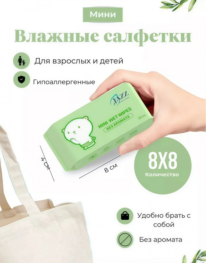 Jazz Набор влажных мини-салфеток для детей без аромата «Mini Wet Wipes»