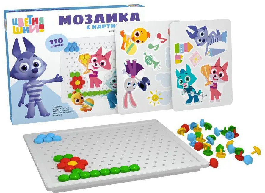 💳 Оплатить за товар можно при получении 🇰🇿 Есть бесплатная доставка по Казахстану от 1 дня 🎁 Копите бонусы с каждой покупки Мозаика с картинками — это увлекательная игра, которая не только принесет радость, но и поможет в развитии внимания, усидчивости, фантазии, творческих способностей ребенка и позволит узнать знакомые образы героев мультфильма. Ребенок сможет создать как свои собственные веселые сюжеты, по-разному сочетая фишки и аппликации, так и использовать для игры готовые композиции, изображенные на коробке. Все детали выполнены из прочных и абсолютно безопасных материалов. Они легко и надежно крепятся, не выпадают при переноске готовой картинки. Такая мозаика станет отличным подарком для вашего малыша! |