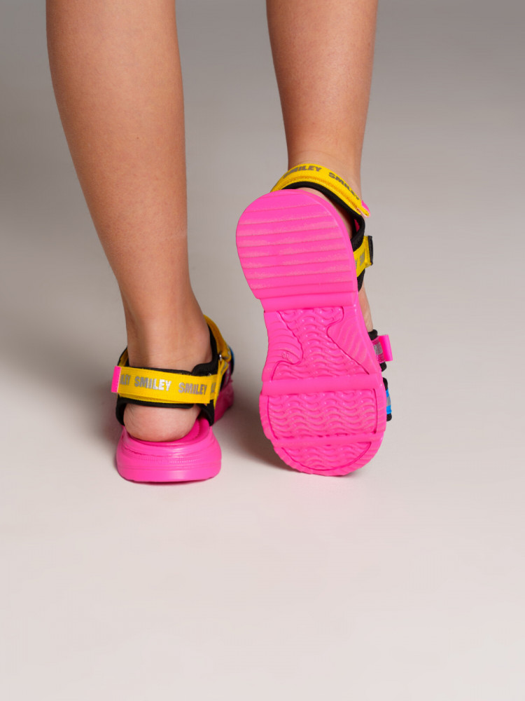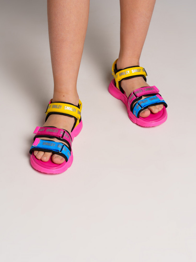 Сандалии из текстиля. Подкладка с высоким содержанием хлопка 80%. Кожаная стелька с анатомическим элементом. Устойчивая к истиранию подошва. Регулировка всех ремней на застежки-липучки.