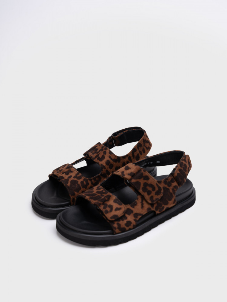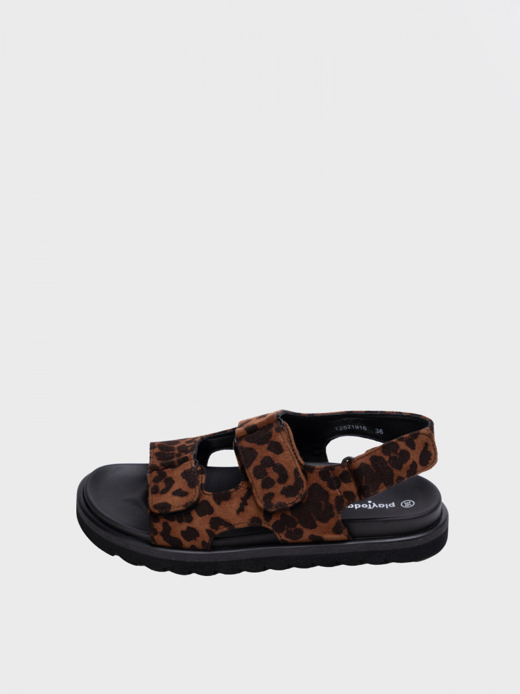 Стильные сандалии для девочки подростка. Верх модели выполнен из текстильного материала с леопардовым принтом. Модель регулируется на любой подъем и ширину стопы за счет ремешков. Стелька имеет профилированную форму с учетом особенностей стопы. Стельку легко мыть.