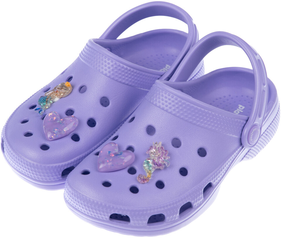 Сабо из облегченного и прочного ЭВА. Материал хорошо моется. Модель украшена глиттерными джибитцами. Форма модели учитывает эргономику стопы. Модель имеет перекидной ремешок для лучшей фиксации обуви на ноге.